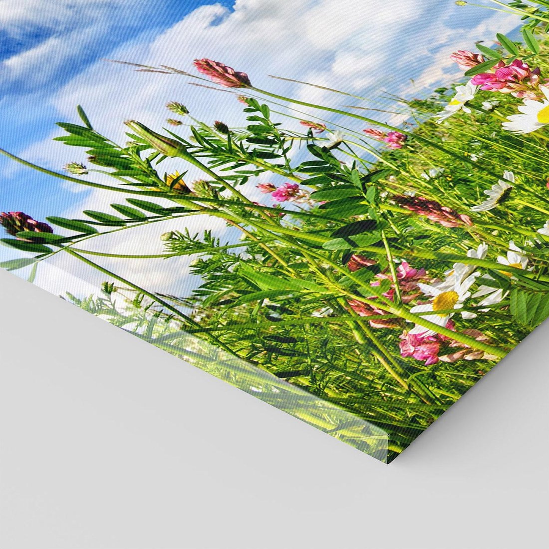 Przenieś się w niebiański świat kwiatów dzięki temu uroczemu obrazowi przedstawiającemu łąkę otoczoną niebem. Soczyste kolory, delikatne płatki i błękitna przestrzeń tworzą magiczną atmosferę. Ten obraz dodaje radości i harmonii, idealny dla osób pragnących wprowadzić do swojego domu odczucie niebiańskiej piękności i wewnętrznego spokoju.