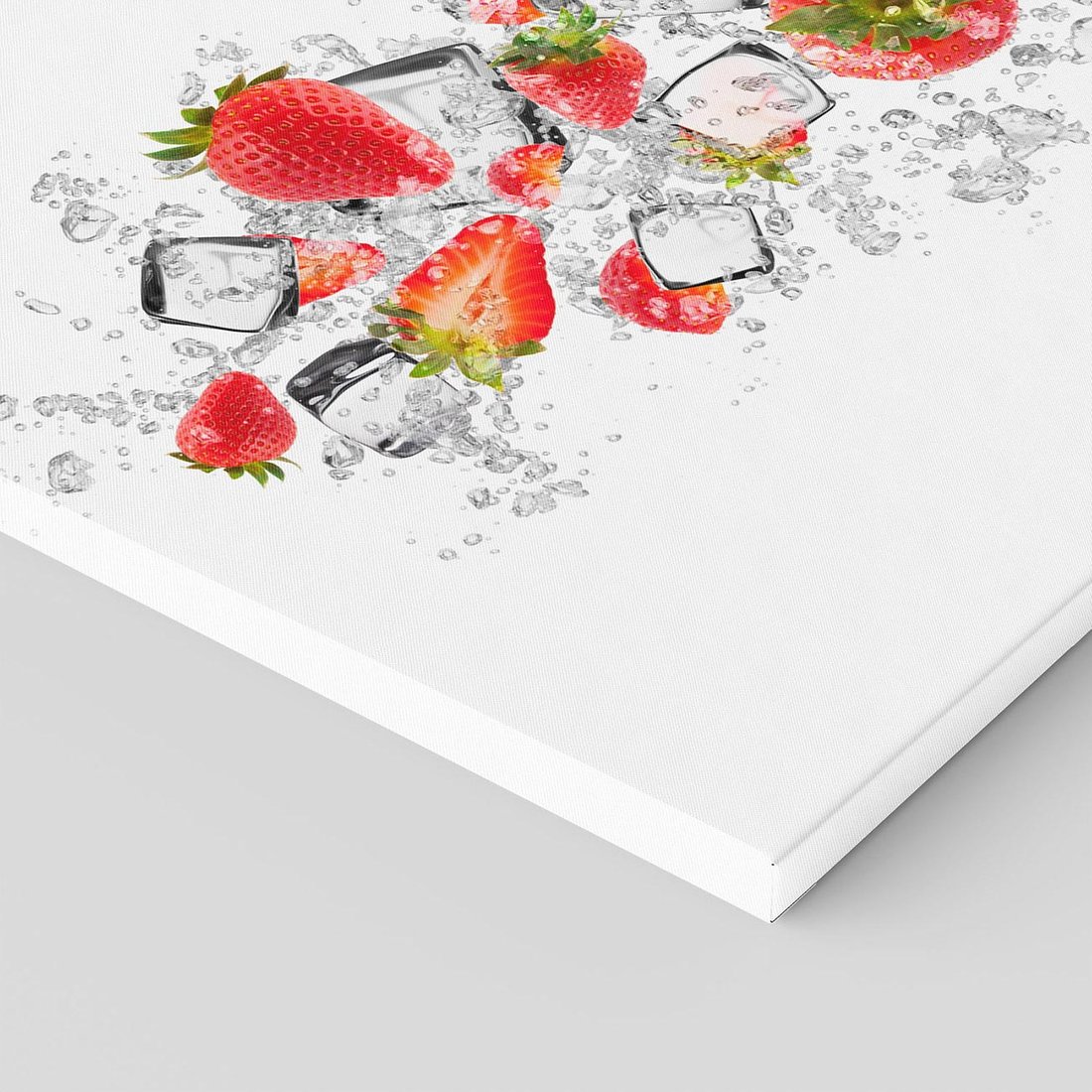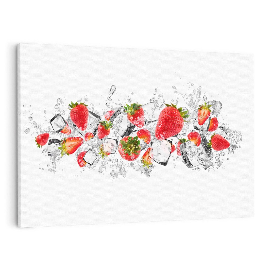 Przywołaj oazę świeżości dzięki temu uroczemu obrazowi przedstawiającemu truskawki w wodzie. Czerwone owoce, pływające płatki i odświeżająca atmosfera tworzą relaksacyjną aurę. Ta kompozycja dodaje koloru i witalności, idealna dla miłośników przyjemności zmysłowych i pragnących wprowadzić owocowe błogostany do swojego wnętrza.