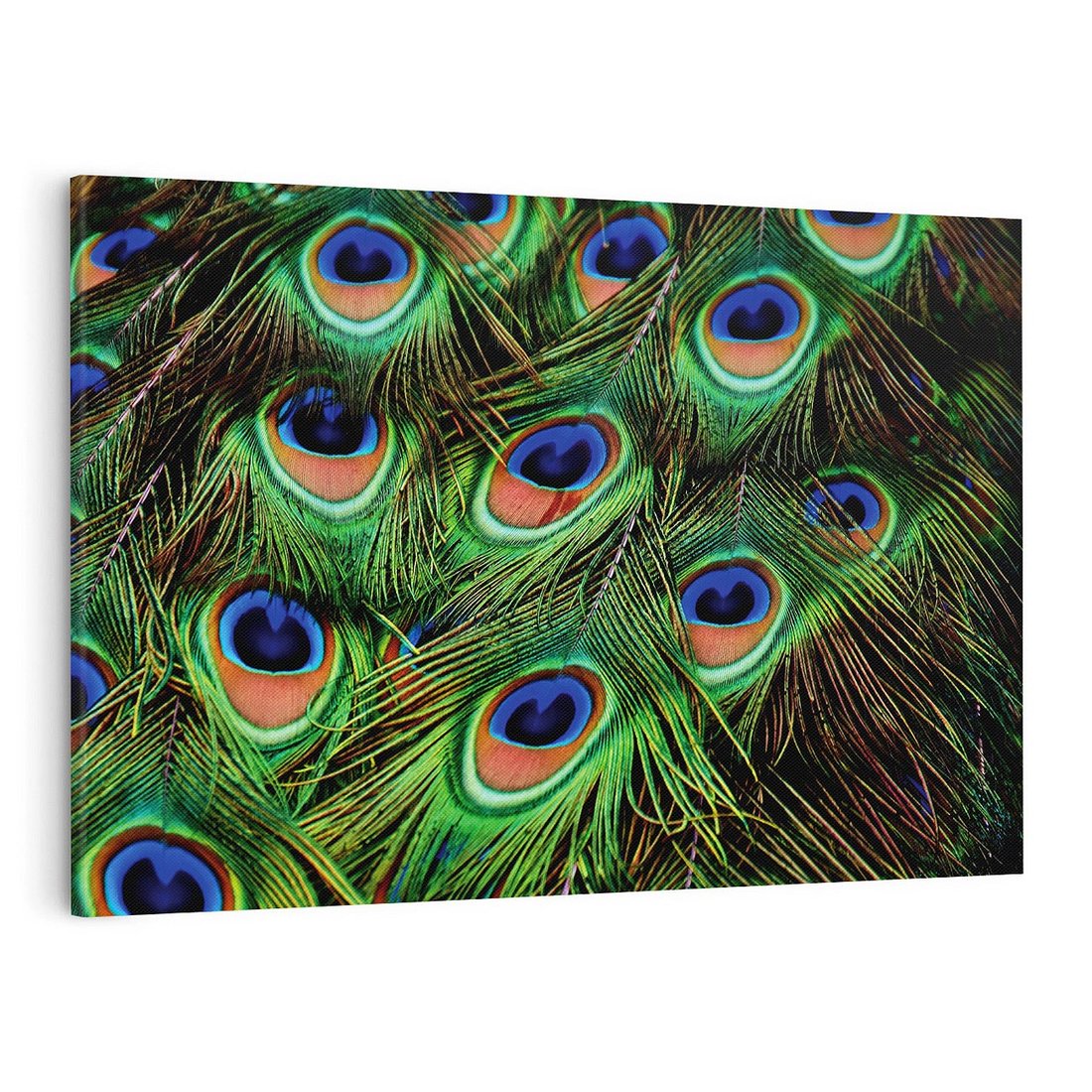 Obraz na płótnie 100x70 - Pawi Ogon - Piękno i Wspaniałość - paw, pióra