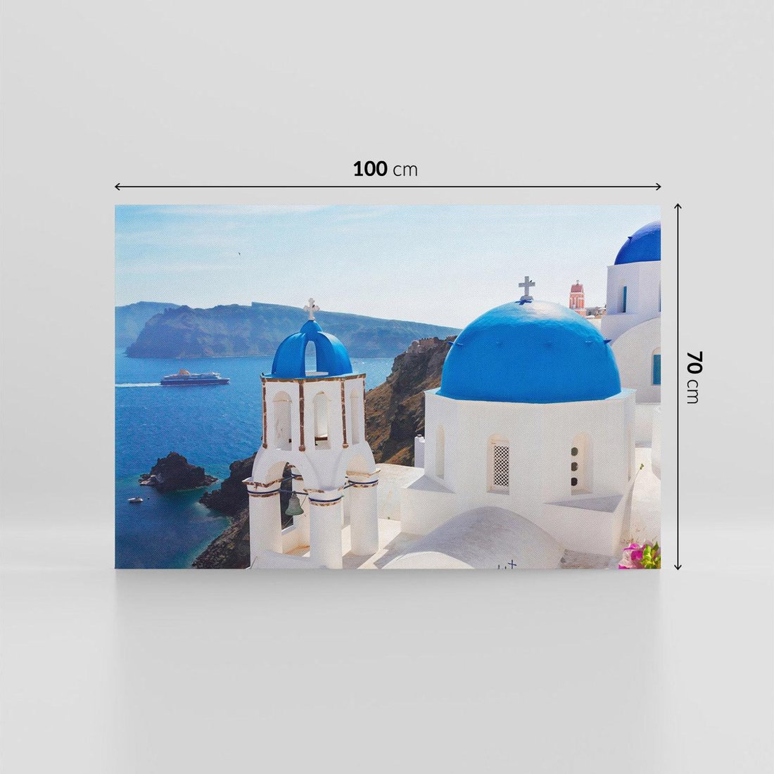 Przenieś się do magicznego Santorini dzięki temu uroczemu obrazowi. Z białymi domami i niebieskimi kopułkami, tworzy atmosferę greckiej sielanki i urzekającego widoku. Ta kompozycja dodaje śródziemnomorskiego uroku i letniego klimatu, idealna dla miłośników greckiej architektury i widoków.