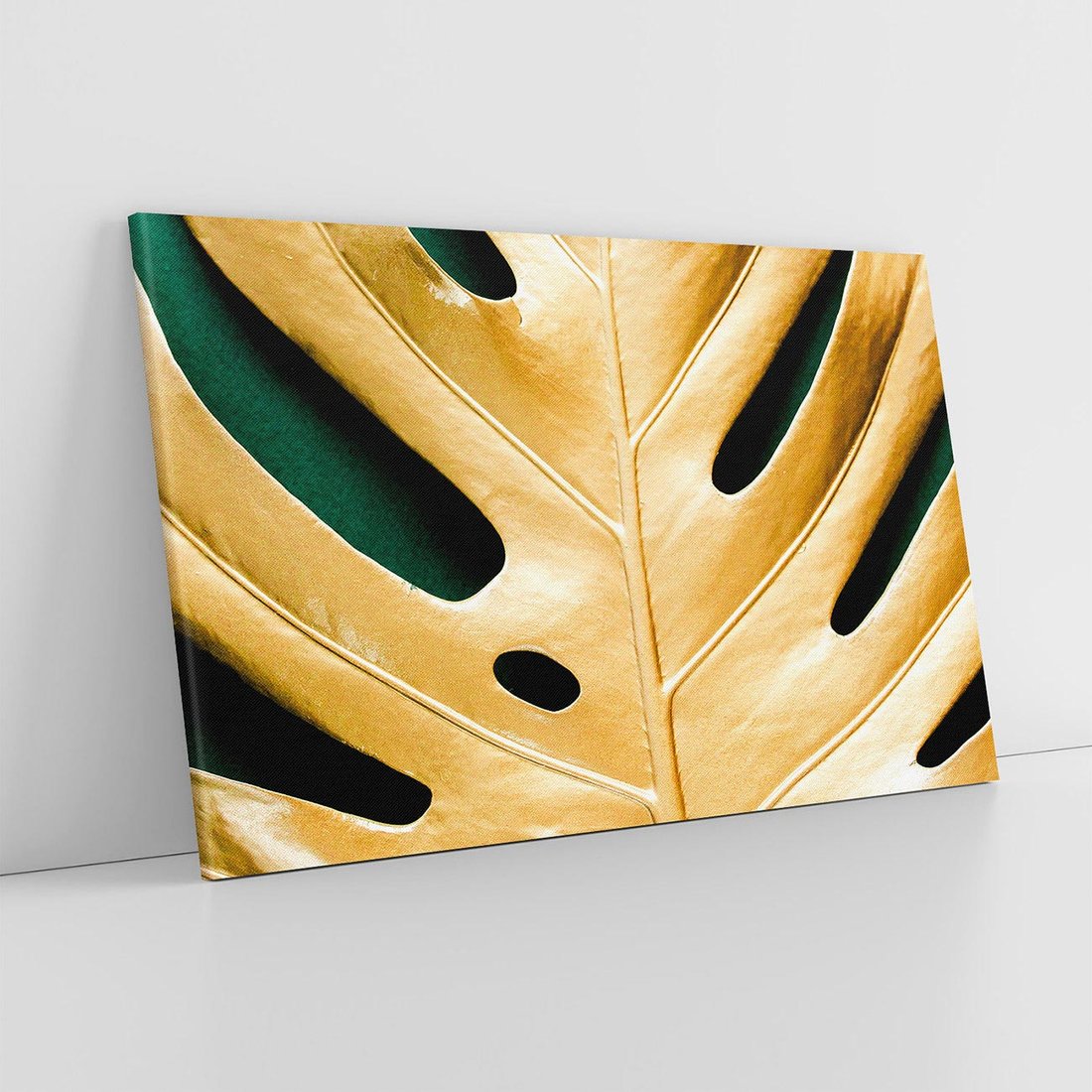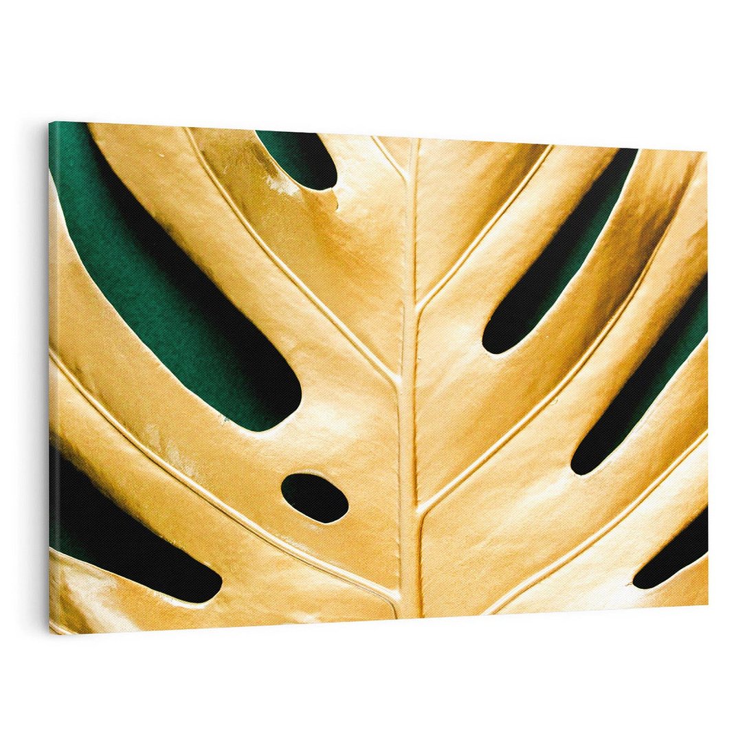 Odkryj piękno i styl złotych liści monstera na obrazie. Dodaj swojemu wnętrzu wyjątkowego uroku i odczuj elegancję, która emanuje z tej minimalistycznej kompozycji.