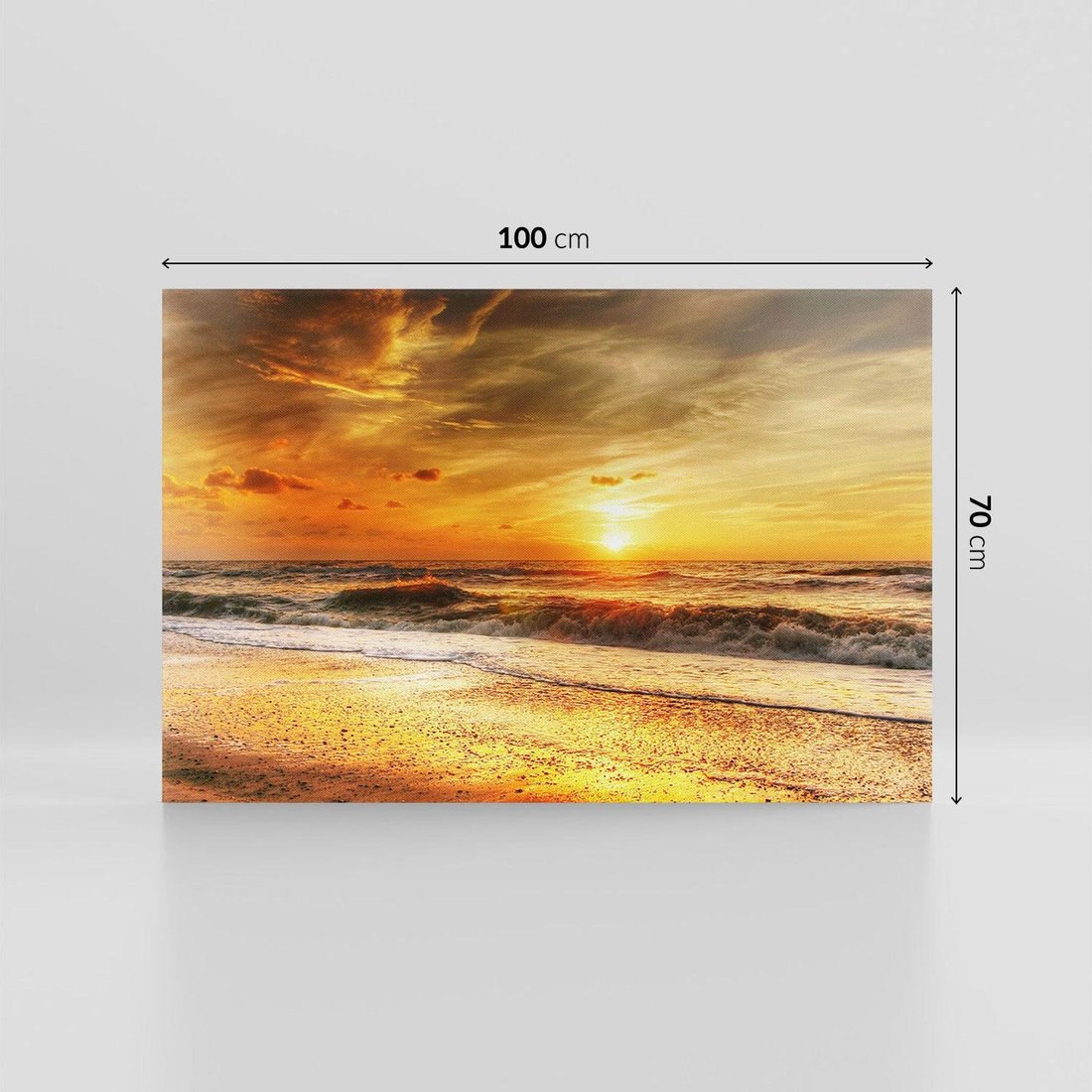 Odkryj siłę i piękno natury na malowniczej plaży, gdzie morze spotyka się z falami zachodzącego słońca. Ta kompozycja kolorów i energia morskich fal przeniosą Cię w krainę błogiego relaksu i wewnętrznego spokoju. To idealny sposób na stworzenie atmosfery nadmorskiego wypoczynku w Twoim wnętrzu.