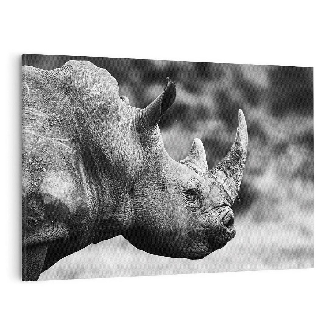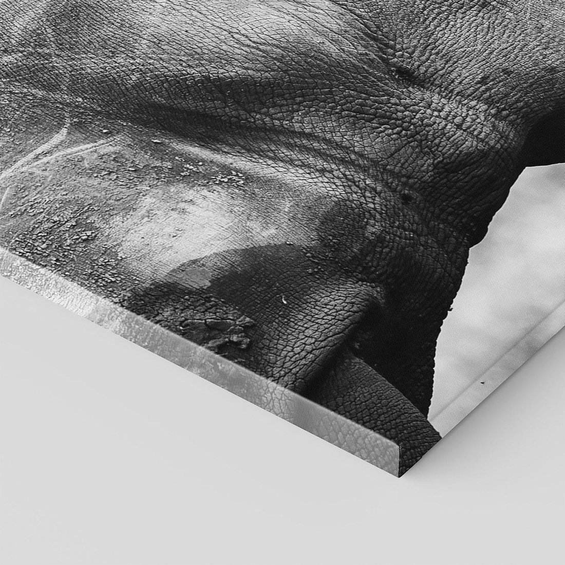 Obraz na płótnie 100x70 - Potęga Afryki - czarno biała fotografia, zbliżenie na postać nosorożca