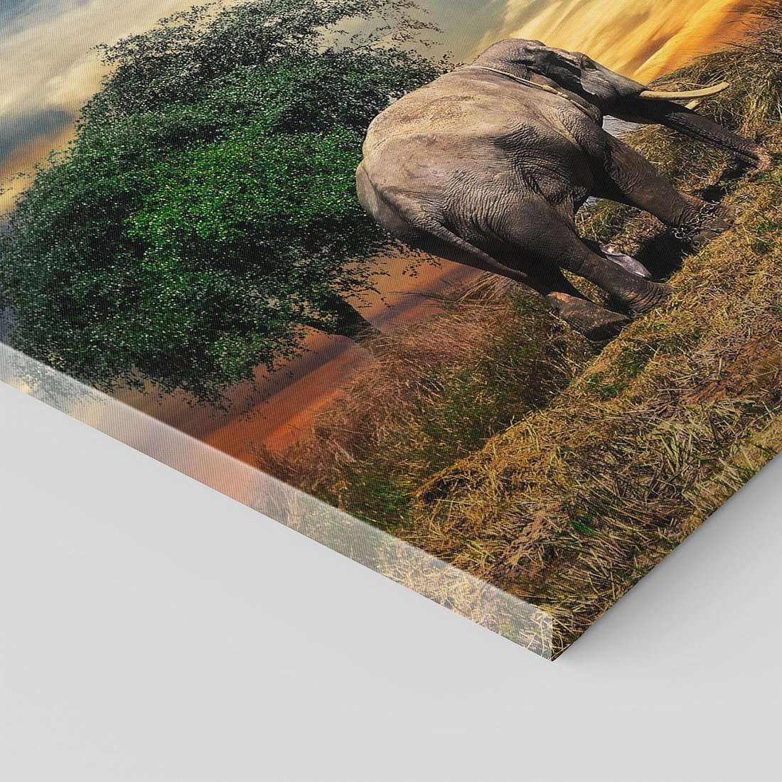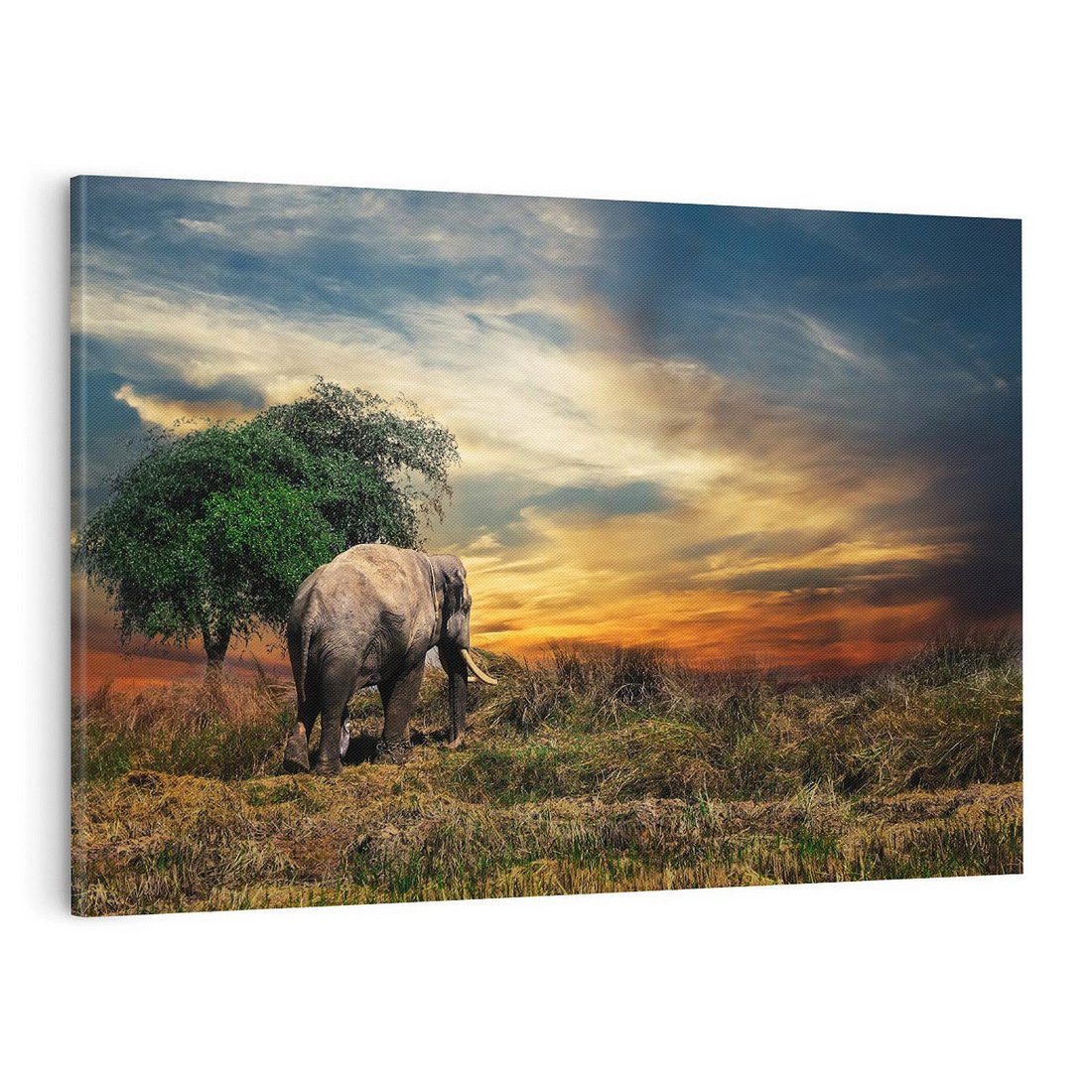 Ta imponująca kompozycja przedstawia potężnego słonia, symbol Afryki, w naturalnym środowisku. Słoń emanuje siłą i majestatem, a tło sawanny dodaje głębi i autentyczności. Ten obraz na płótnie przeniesie Cię w dziką przyrodę Afryki, gdzie będziesz mógł podziwiać jej niesamowite zwierzęta.
