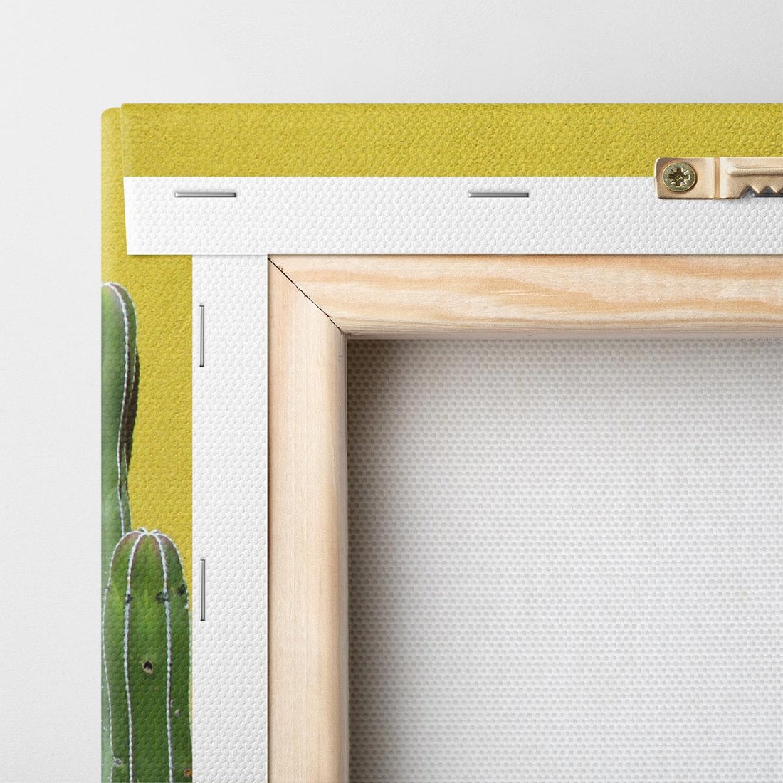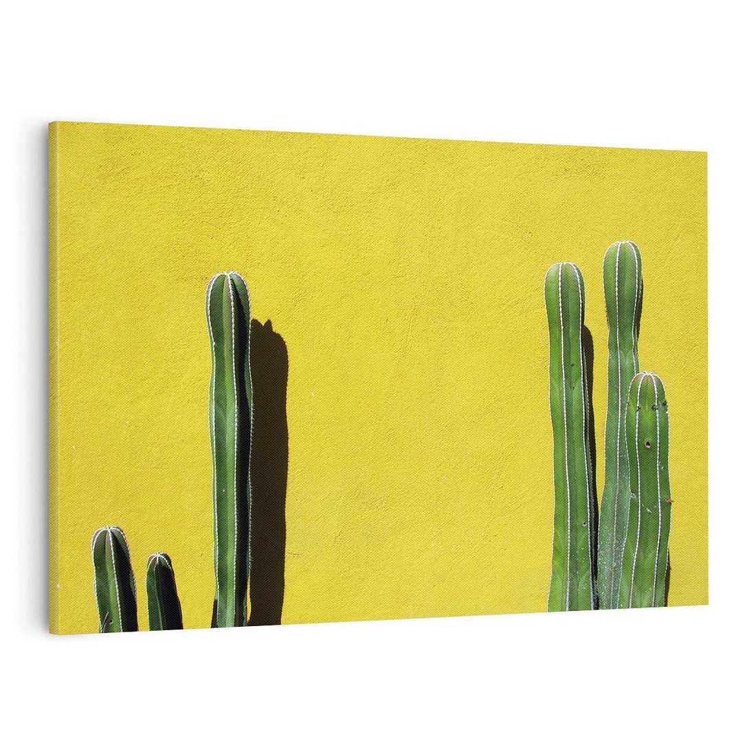 Obraz na płótnie 100x70 - Refleksje w roślinnym odbiciu - zielone kaktusy na tle żółtej ściany, soczyste kolory