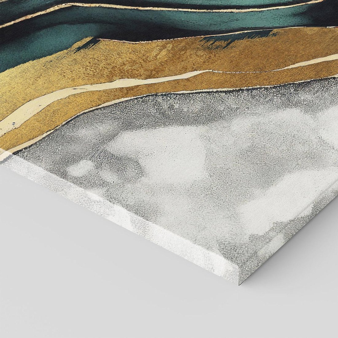 Wprowadź do swojego wnętrza fascynujący obraz abstrakcji o szarych odcieniach jak marmurowa rzeka, wzbogacony złotymi liniami. Kunsztowna kompozycja marmuru i szmaragdu nadaje mu wyjątkowej elegancji. Dzieło to stworzono dla miłośników sztuki, pragnących unikalnej dekoracji, która ożywi przestrzeń i wzbudzi zachwyt.