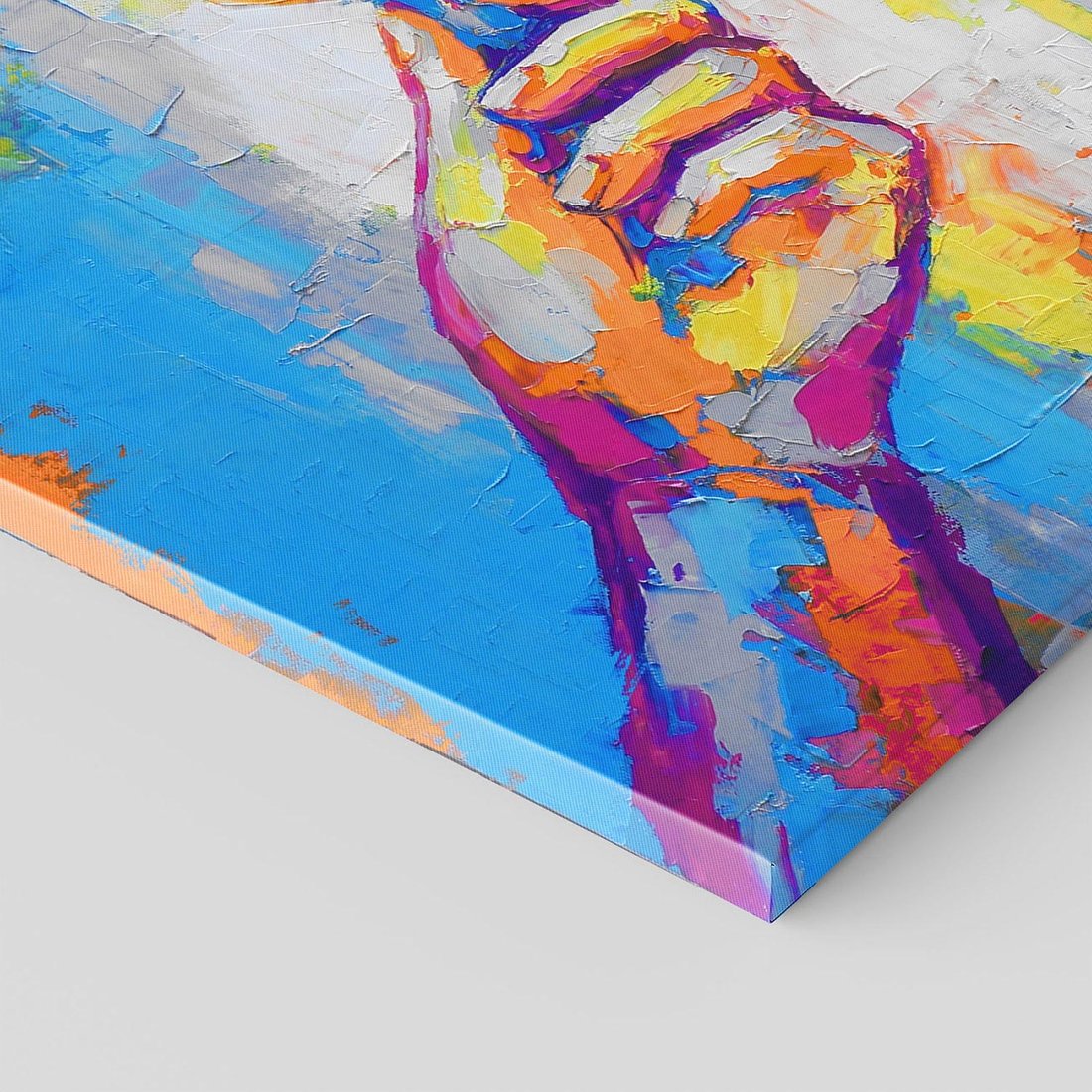 To abstrakcyjne dzieło ukazuje dłoń trzymającą żarówkę, symbolizującą pomysł i inspirację. Nieoczywiste kolory, głównie żółć i niebieski, podkreślają niezwykłość i wyjątkowość tej idei. Całość kompozycji emanuje kreatywnością i wizją, zachęcając widza do odkrywania nowych horyzontów. To malarskie arcydzieło przypomina nam, jak ważne jest odkrywanie nieznanych obszarów umysłu, by odnaleźć wyjątkowe rozwiązania.