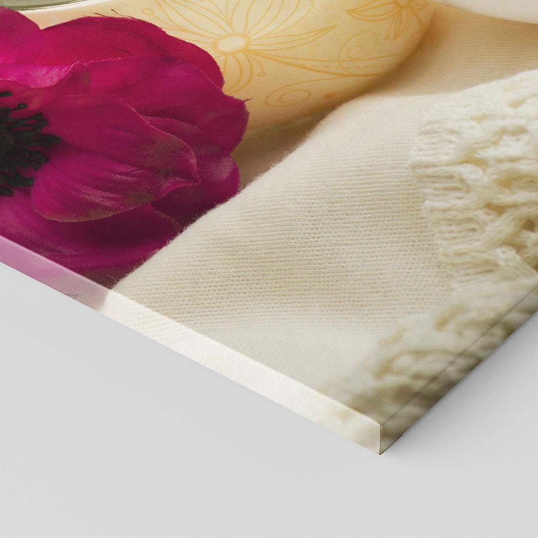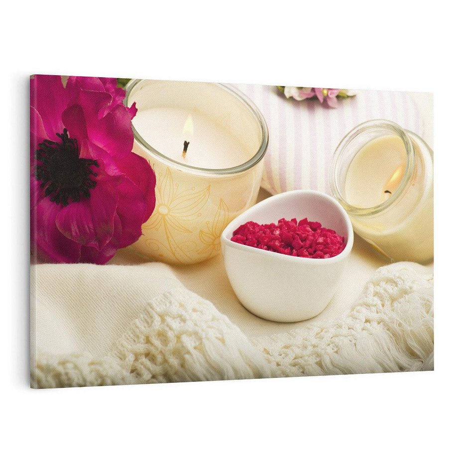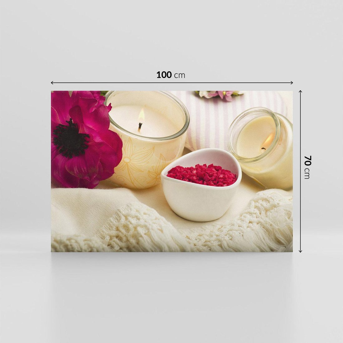 - Obraz na płótnie 100x70 - Relaksujący moment: świeczki i kwiaty w SPA