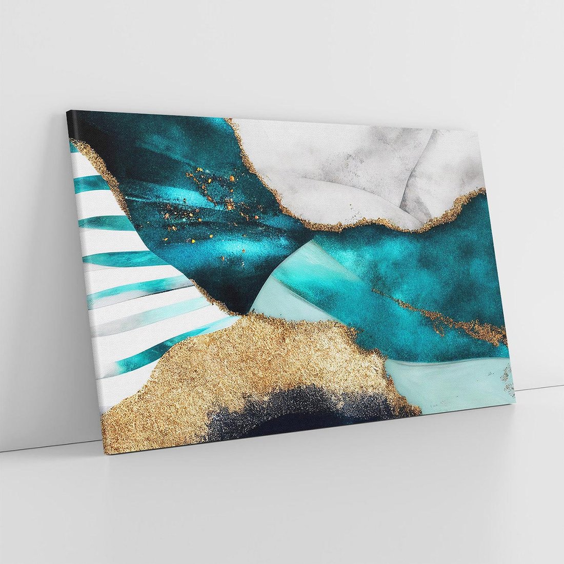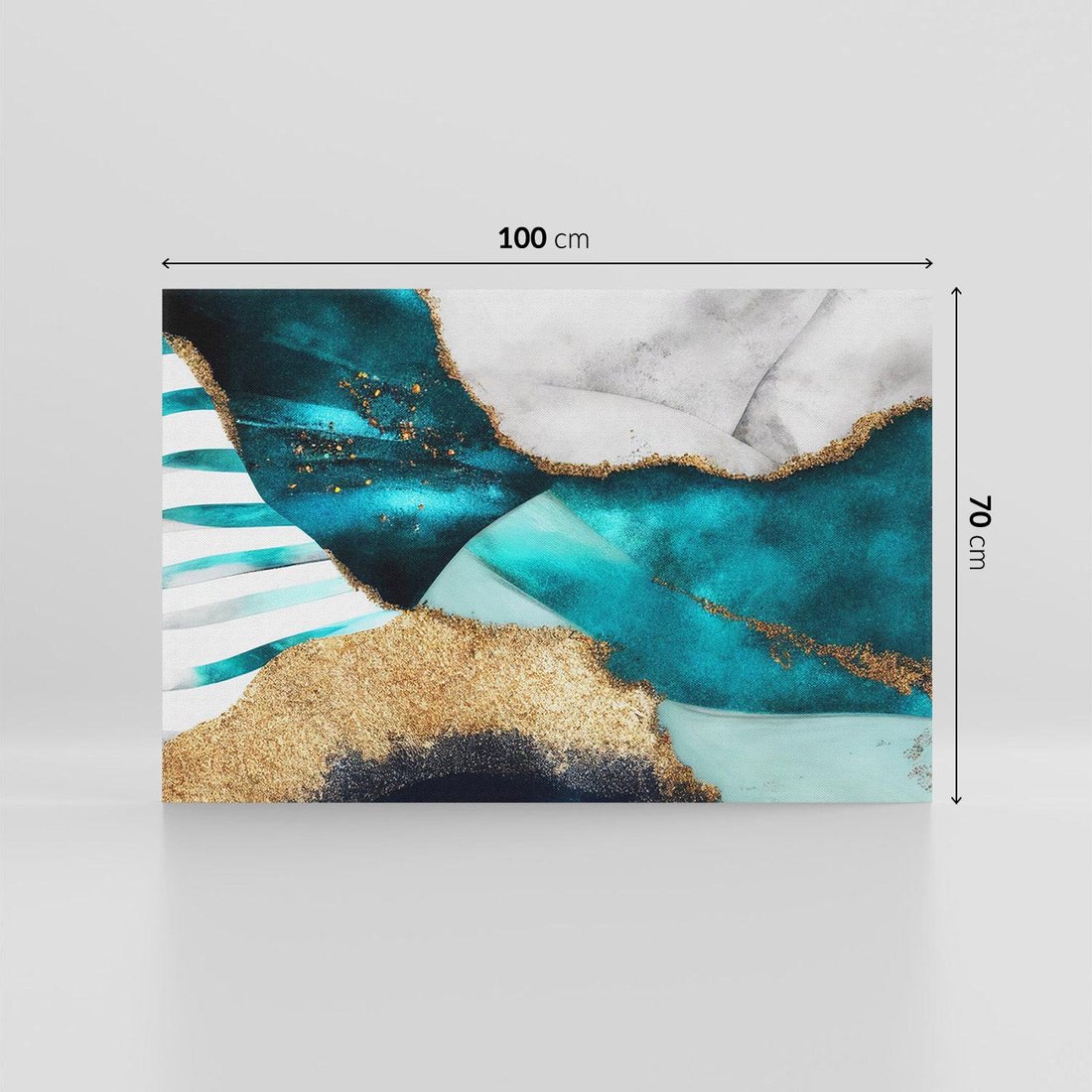 Obraz na płótnie 100x70 - Rozlane Turkusy - Turkusowe plamy, złote elementy
