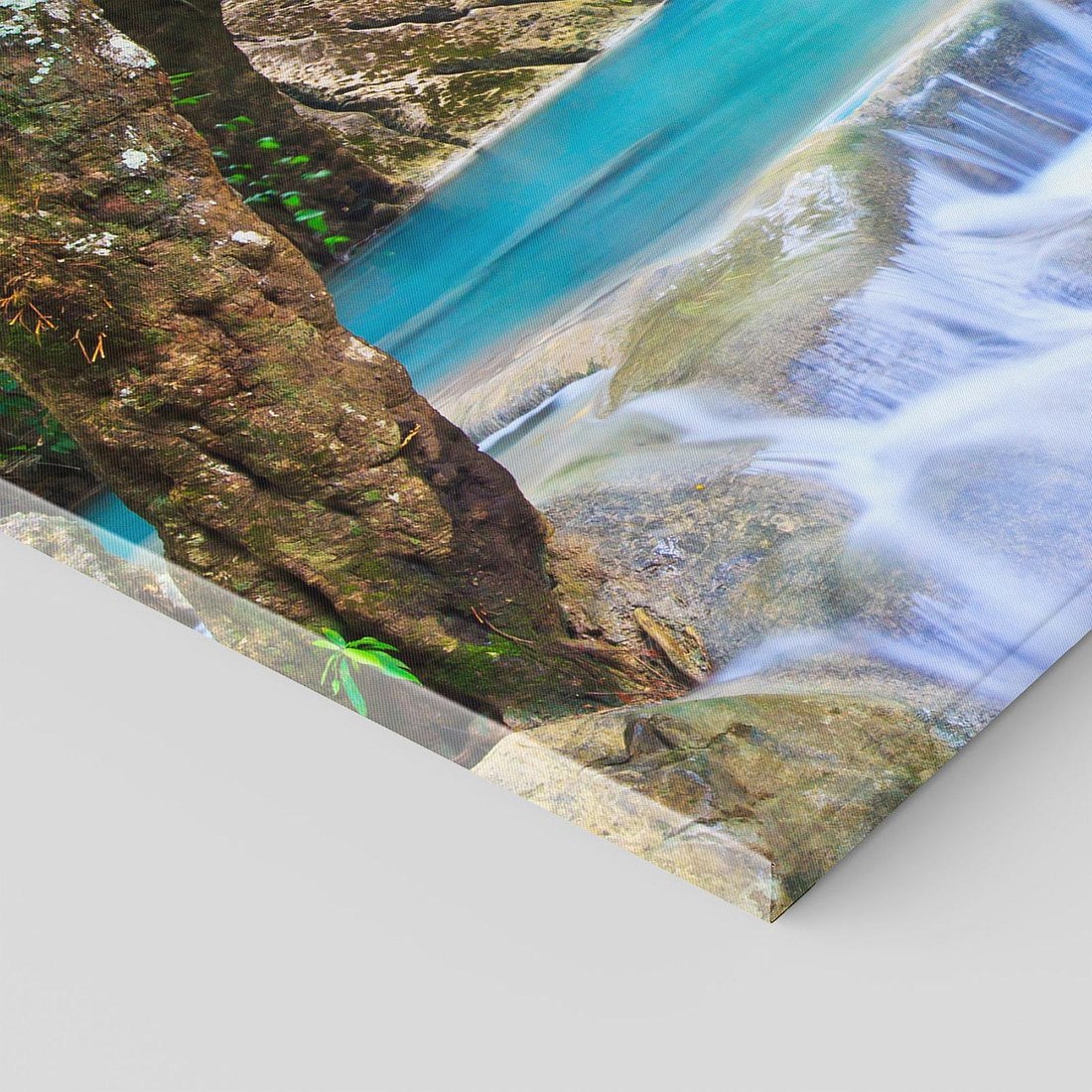 Poczuj moc płynącej rzeki i jej spektakularny urok na tym pięknym obrazie. Jej rwące nurty i spienione wodospady tworzą aurę energii i piękna natury. Ta kompozycja dodaje dynamiki i świeżości, idealna dla miłośników przyrody i fascynacji wodą.