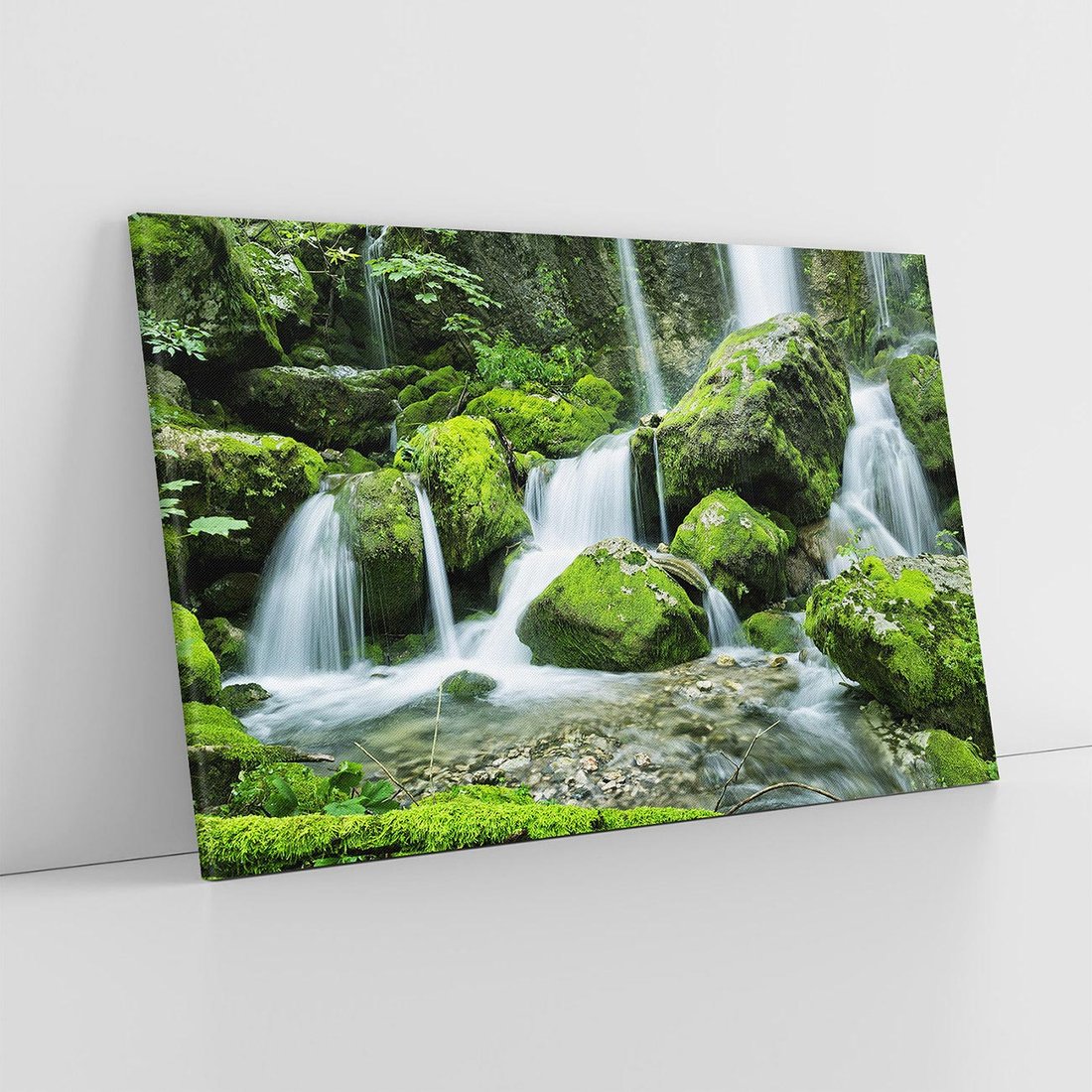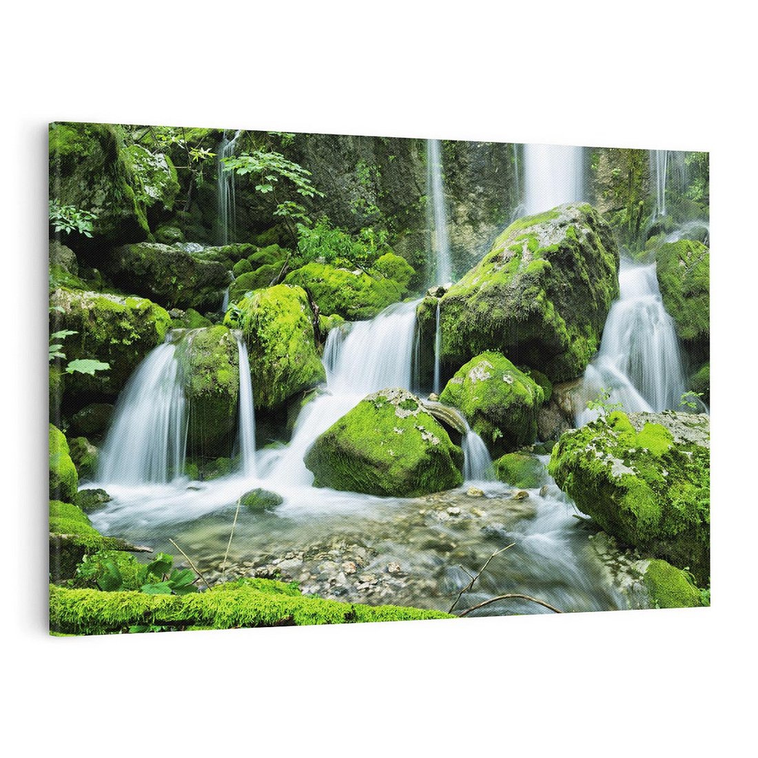 Obraz na płótnie 100x70 - Spokojny wodospad w lesie nad rzeką - wodospad, las