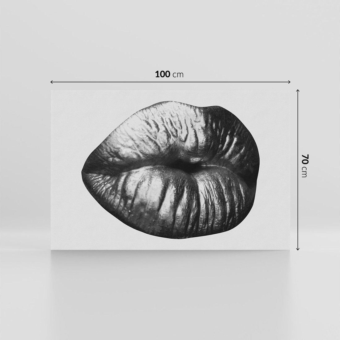 Obraz na płótnie 100x70 - Srebrna Moc Wyrazu - srebrne usta, zbliżenie