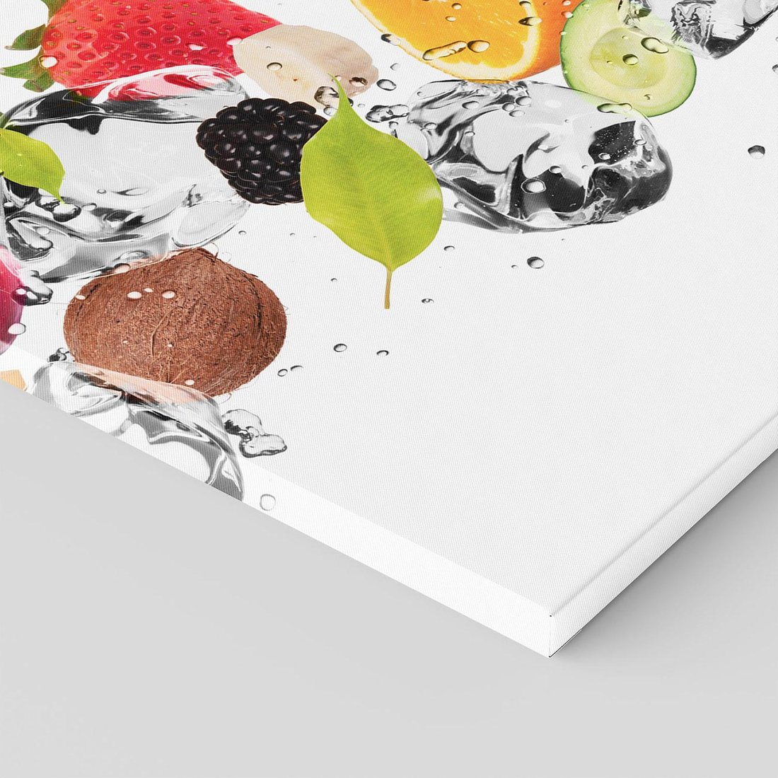 Ten dynamiczny obraz na płótnie przynosi połączenie soczystych owoców, orzeźwiającej wody i lodu. Jego intensywne kolory i tekstury przenoszą świeżość i energię lata do Twojego wnętrza, tworząc przyjemną atmosferę.