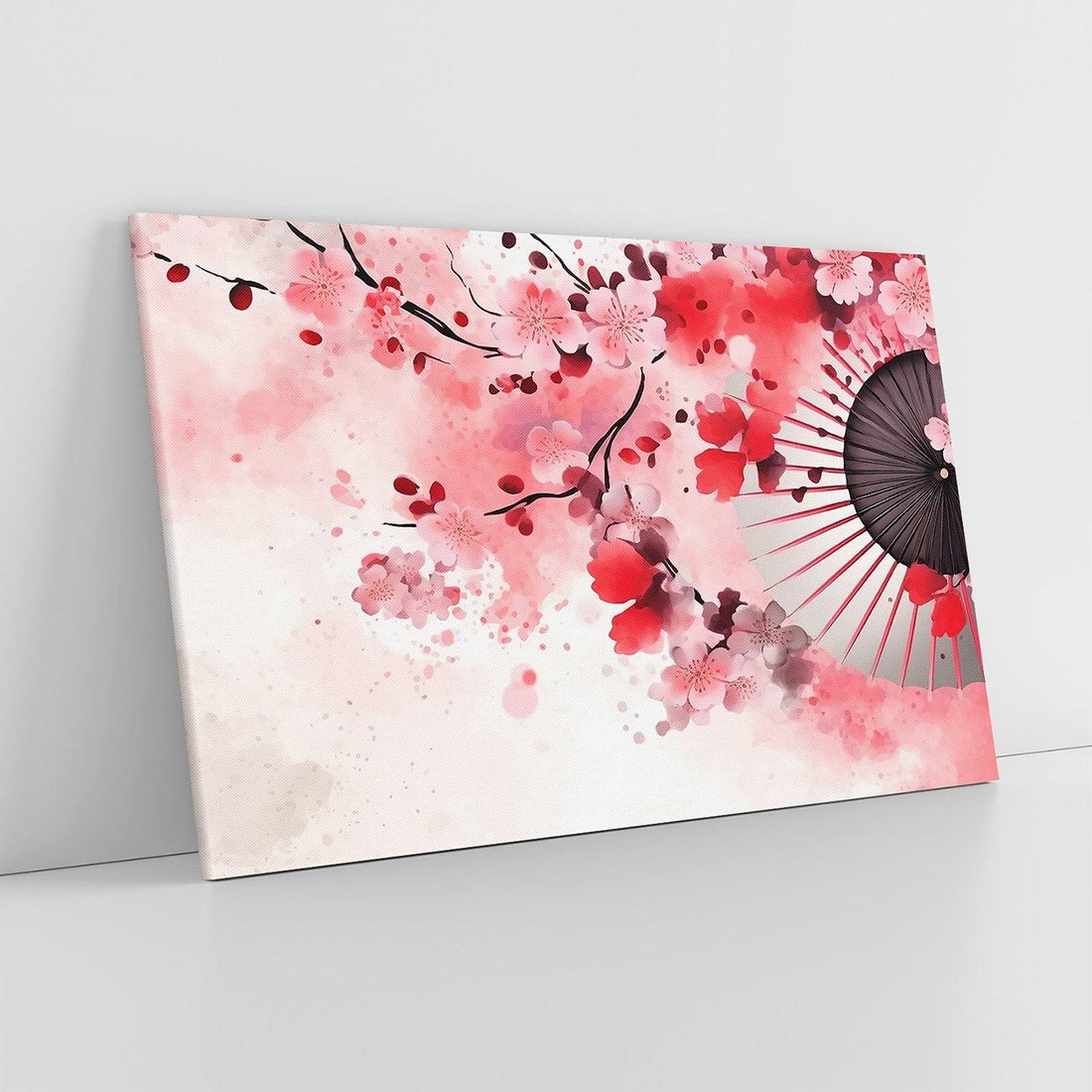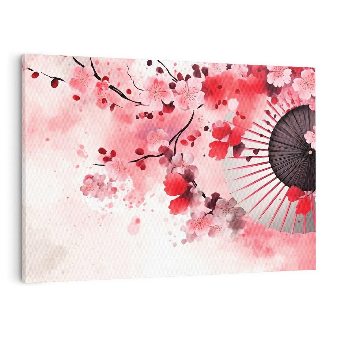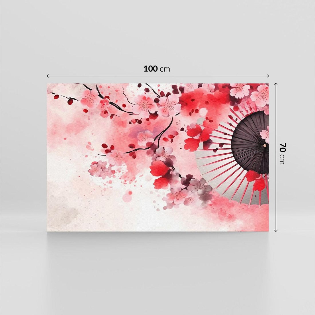 Obraz na płótnie 100x70 - Szept Kwitnącej Wiśni - japoński parasol, liście