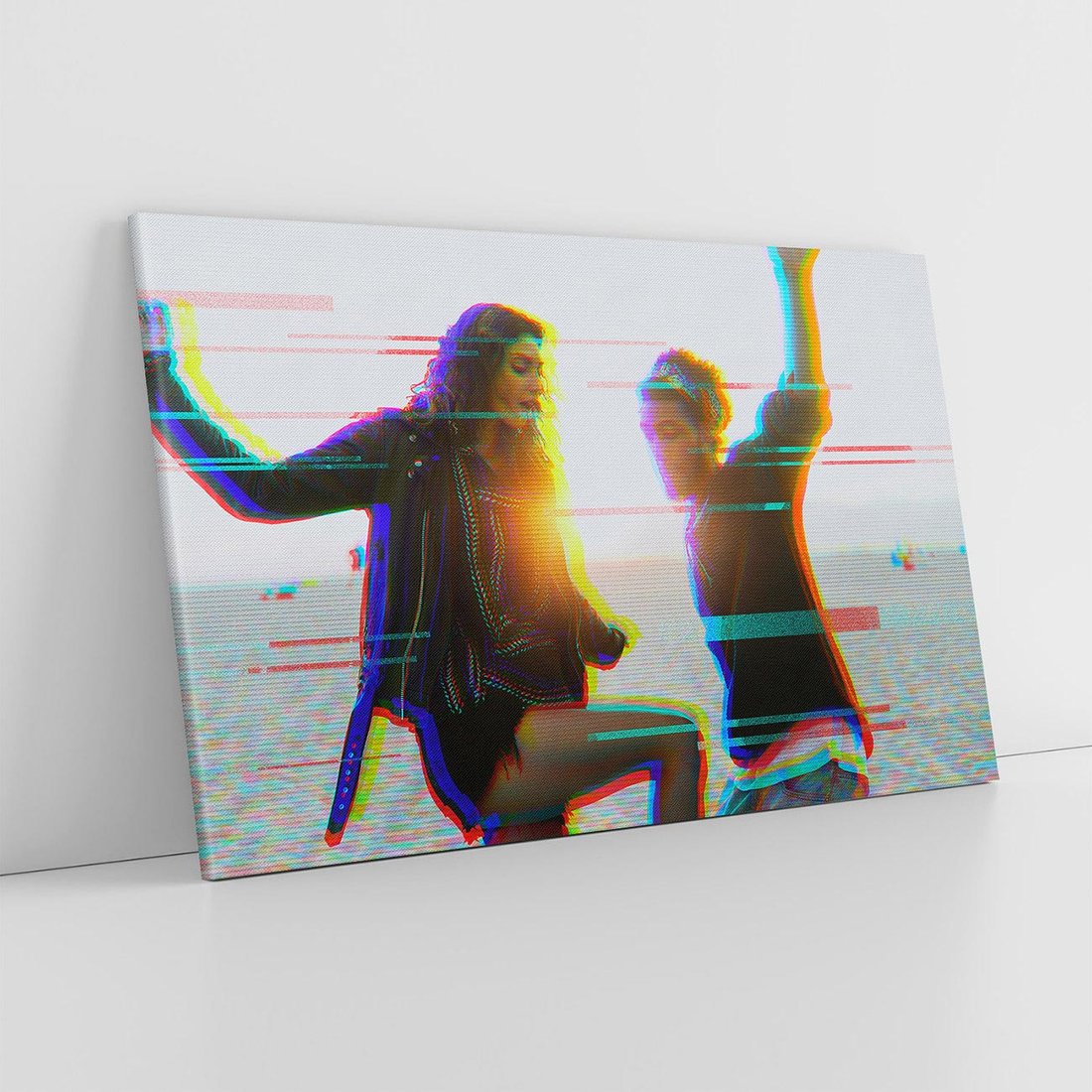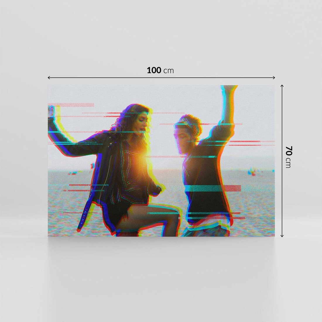 Odkryj nostalgiczny obraz w stylu retro, który przedstawia parę młodych ludzi tańczących na plaży. Zdjęcie ożywione jest dodatkowymi kolorowymi akcentami, tworząc kolaż o vintage charakterze. To wyjątkowe dzieło sztuki stworzone dla miłośników estetyki retro, pragnących wnieść ciekawy akcent do swoich wnętrz. Doskonały sposób na podróż w czasie i zachwyt nad chwilami pełnymi szczęścia.