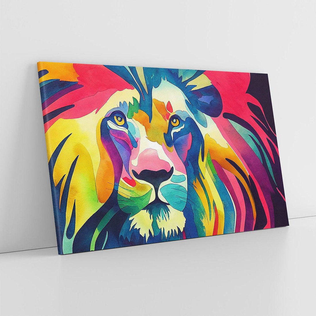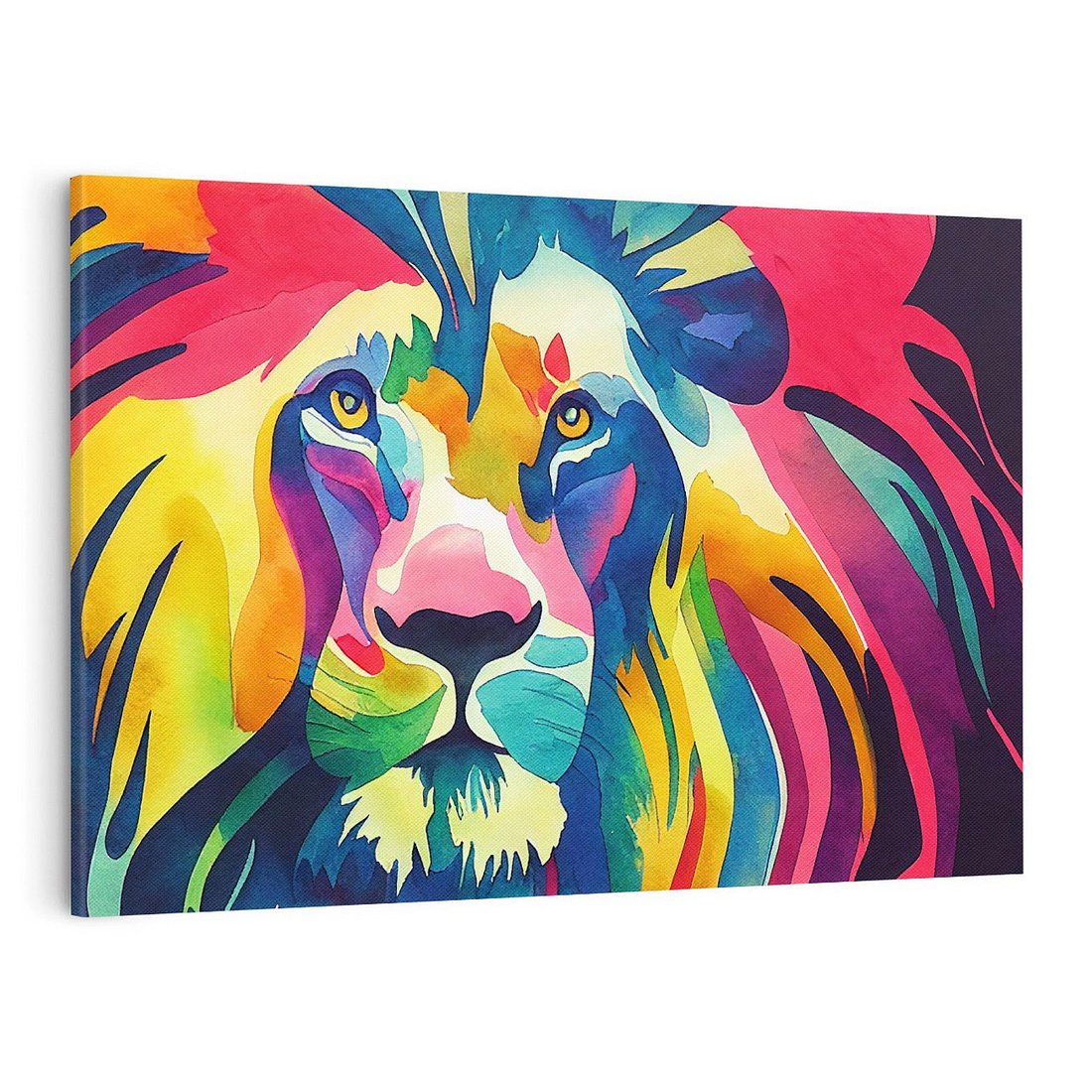 Obraz na płótnie 100x70 - Tęczowy Lew - akwarela, tęczowy lew