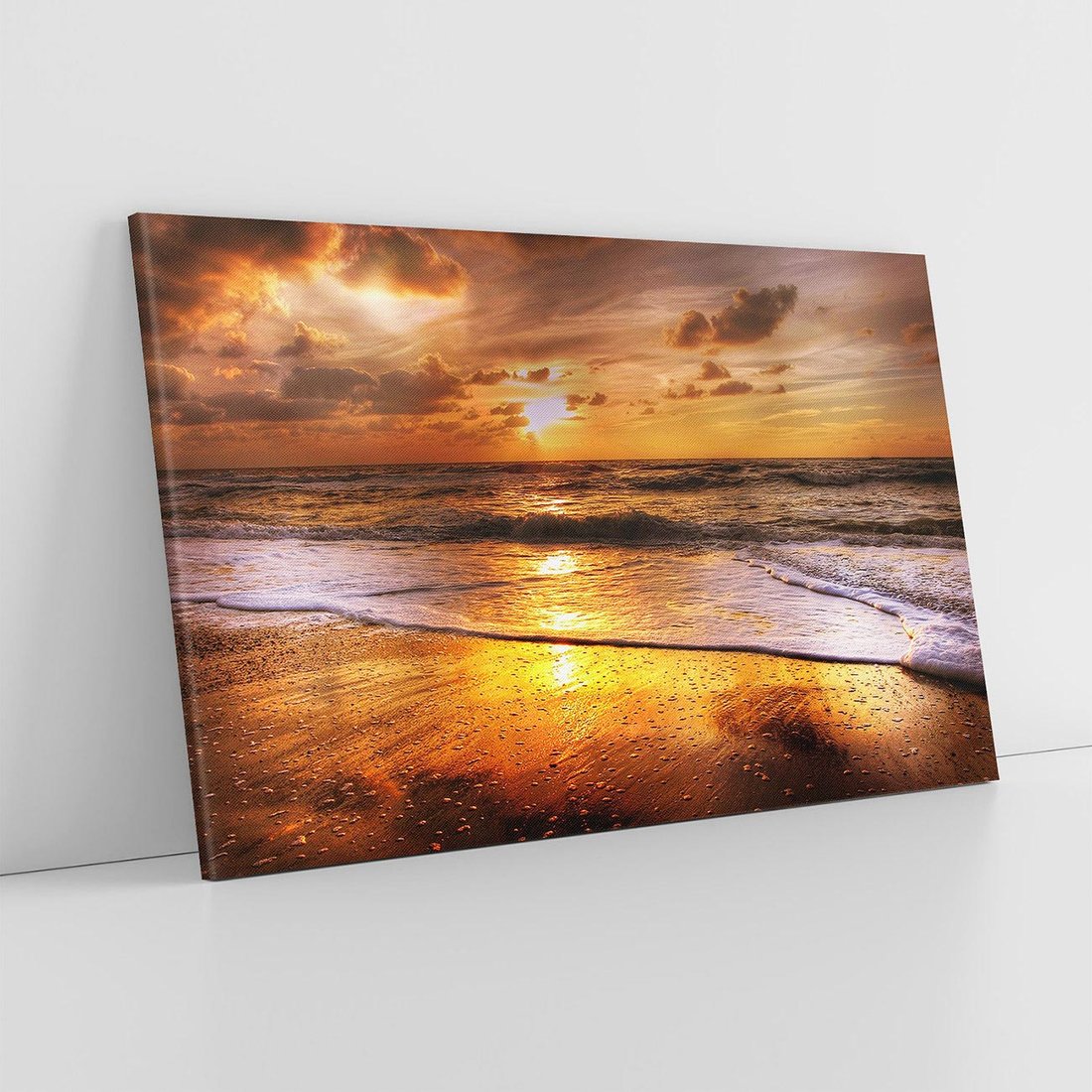Ten romantyczny obraz przedstawia malowniczy zachód słońca nad morzem, tworząc niepowtarzalną atmosferę na plaży. Przenieś się w chwilę spokoju i magii, obserwując ostatnie promienie słońca tonące w oceanie. Dodaj nutę siły natury i romantyzmu do swojego wnętrza tym wyjątkowym obrazem.