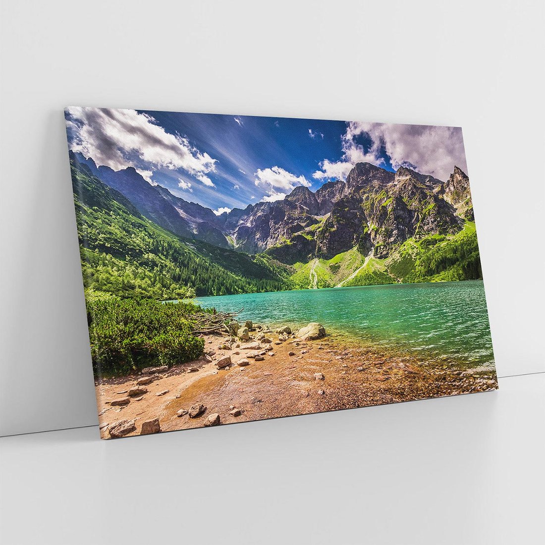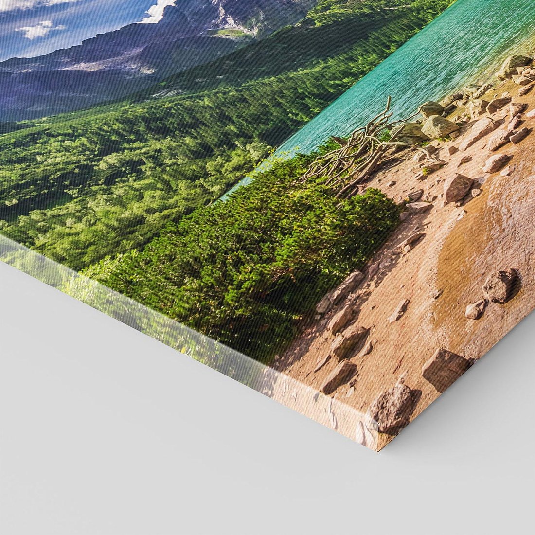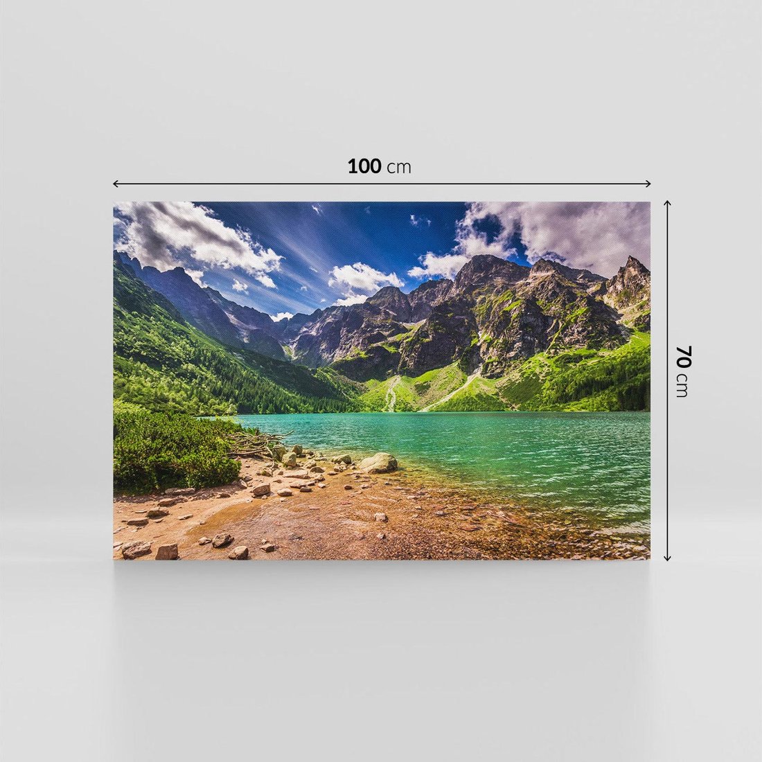 Ożyw swoje wnętrze tym malowniczym obrazem przedstawiającym góry i jezioro w Tatrach. Majestatyczne szczyty, błękitne wody i naturalna spokojna aura tworzą harmonijną aurę. Ta kompozycja dodaje siły przyrody i piękna górskiego krajobrazu, idealna dla miłośników górskich przygód i chwalebnych widoków.