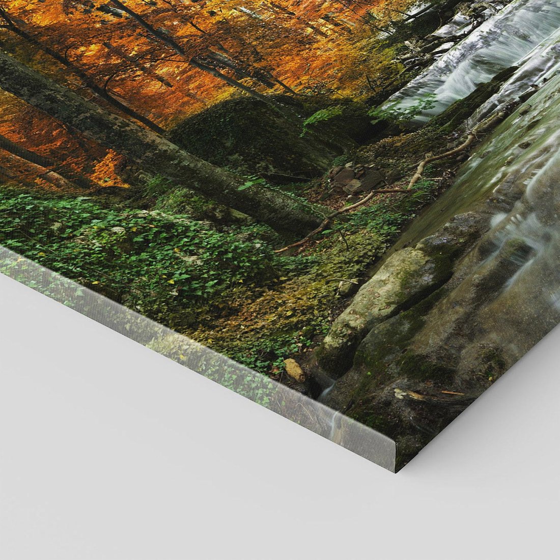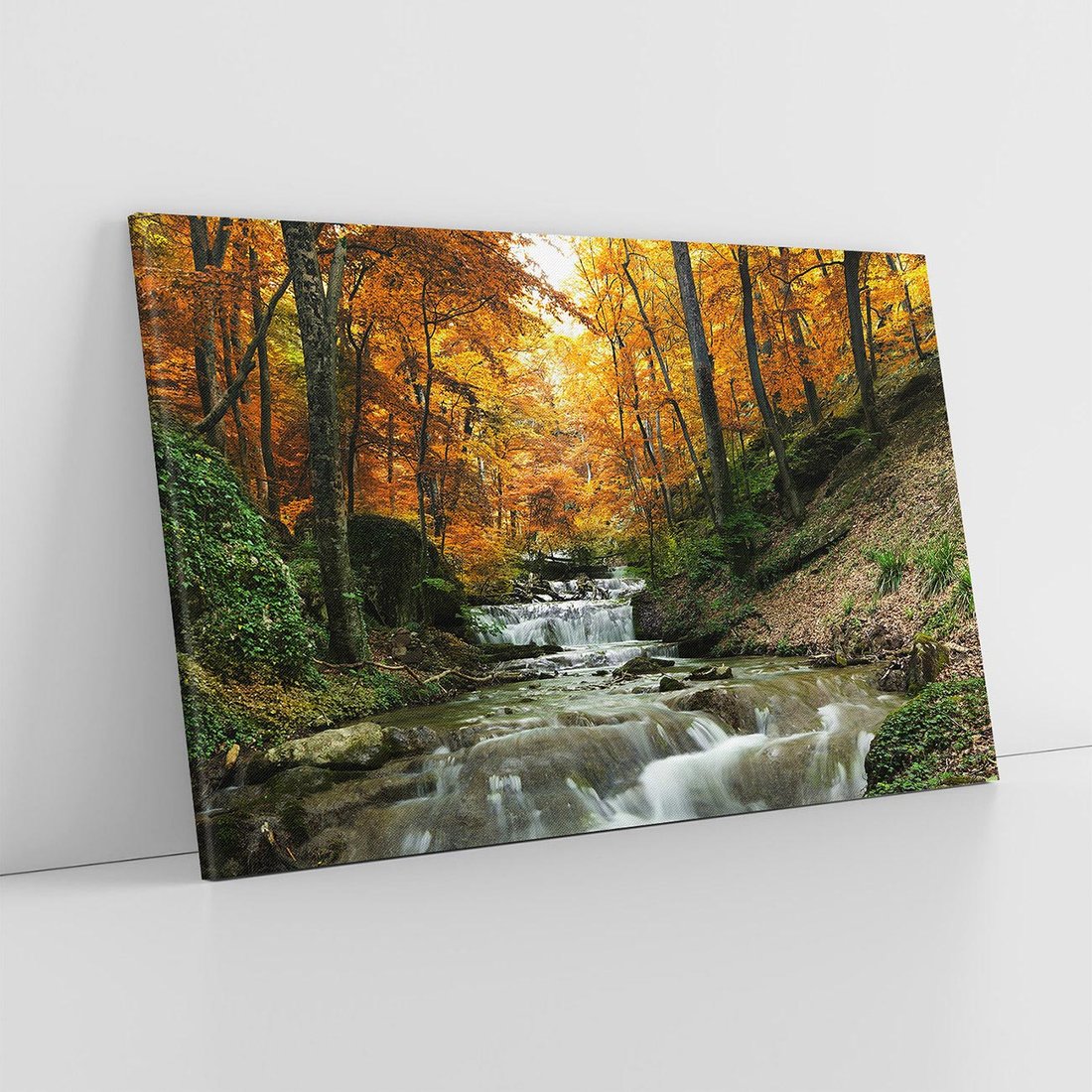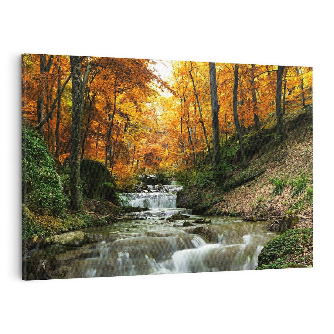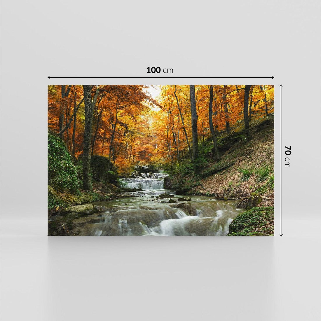 - Obraz na płótnie 100x70 - Urok lasu: drzewa i strumyk w harmonii