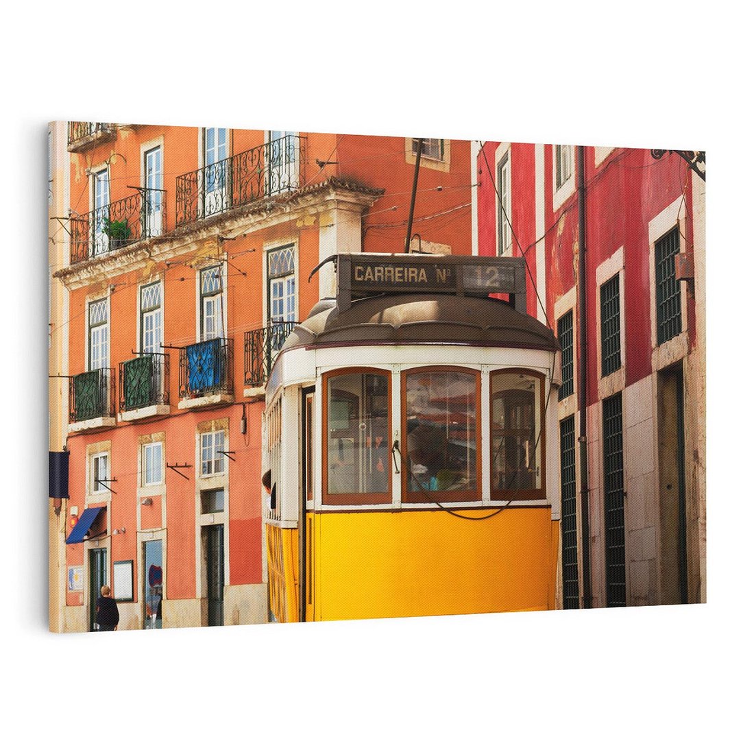 Odkryj urok tramwaju w Lizbonie dzięki temu uroczemu obrazowi. Z kolorowymi fasadami i nostalgicznych nastrojem, ożywia przestrzeń. Ta kompozycja dodaje miejskiego charakteru i romantyzmu, idealna dla miłośników portugalskiego uroku i unikalnych środków transportu.