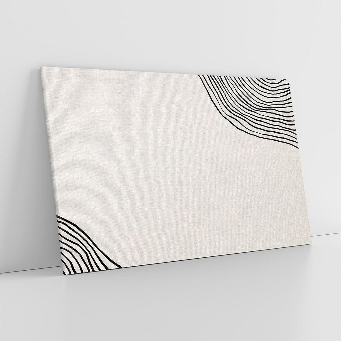 W tym minimalistycznym dziele sztuki beżowe tło przypominające papirus stanowi płótno dla jednej ciągłej linii. Czarne kreski w rogach nawiązują do słojów drzewa, tworząc abstrakcyjny pejzaż natury. To wyjątkowe połączenie wyraża esencję natury i prostoty, oddając bogactwo w jednym zarysie.
