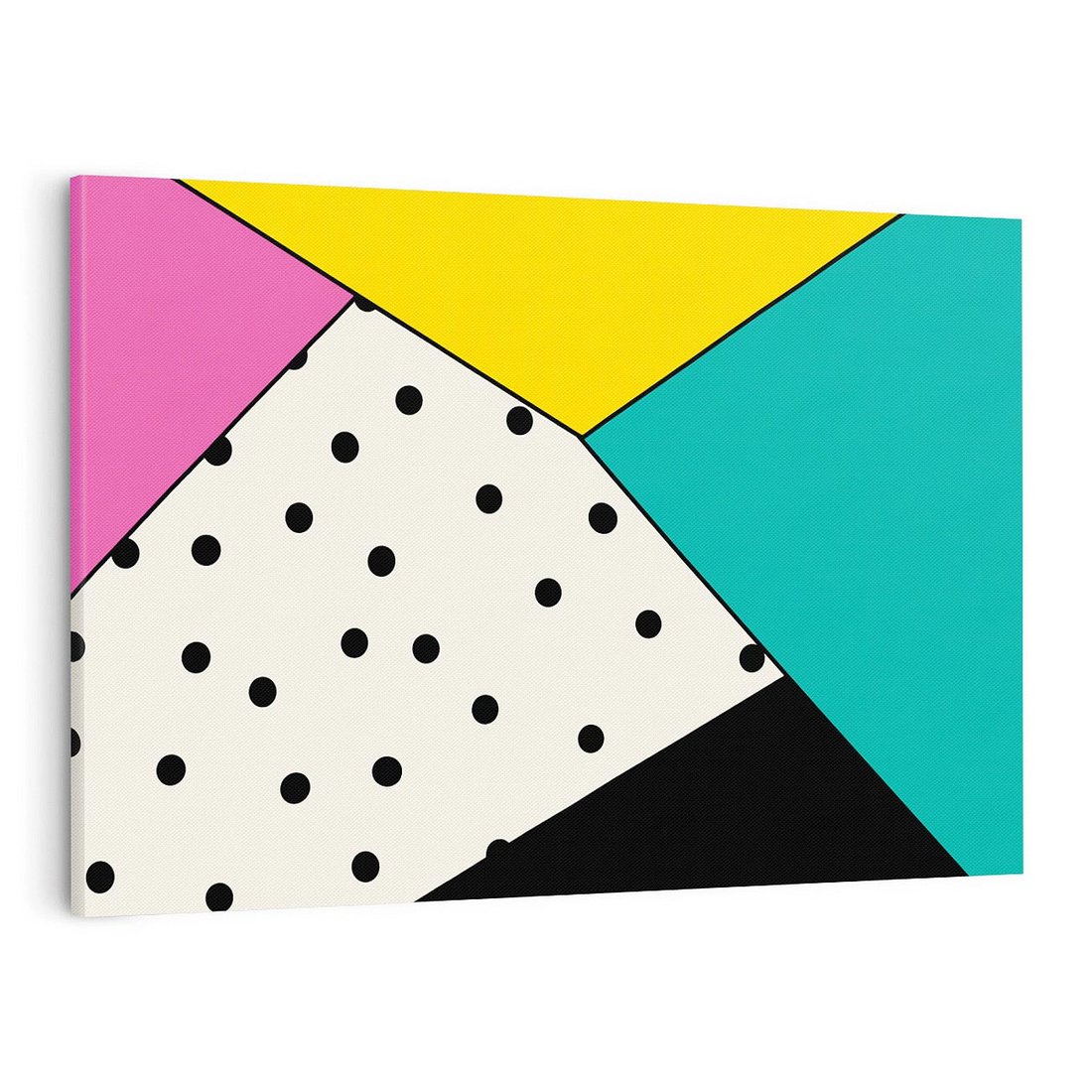 To abstrakcyjne dzieło sztuki przynosi radość w młodzieżowym stylu. Geometryczne kształty i kolorowe kropki tworzą energiczną kompozycję, która cieszy oko i dodaje wyrazistości do wnętrza. Żywe kolory przyciągają uwagę, a nowoczesna abstrakcja dodaje oryginalności i wesołego nastroju. Idealny dodatek do młodzieżowego pokoju.