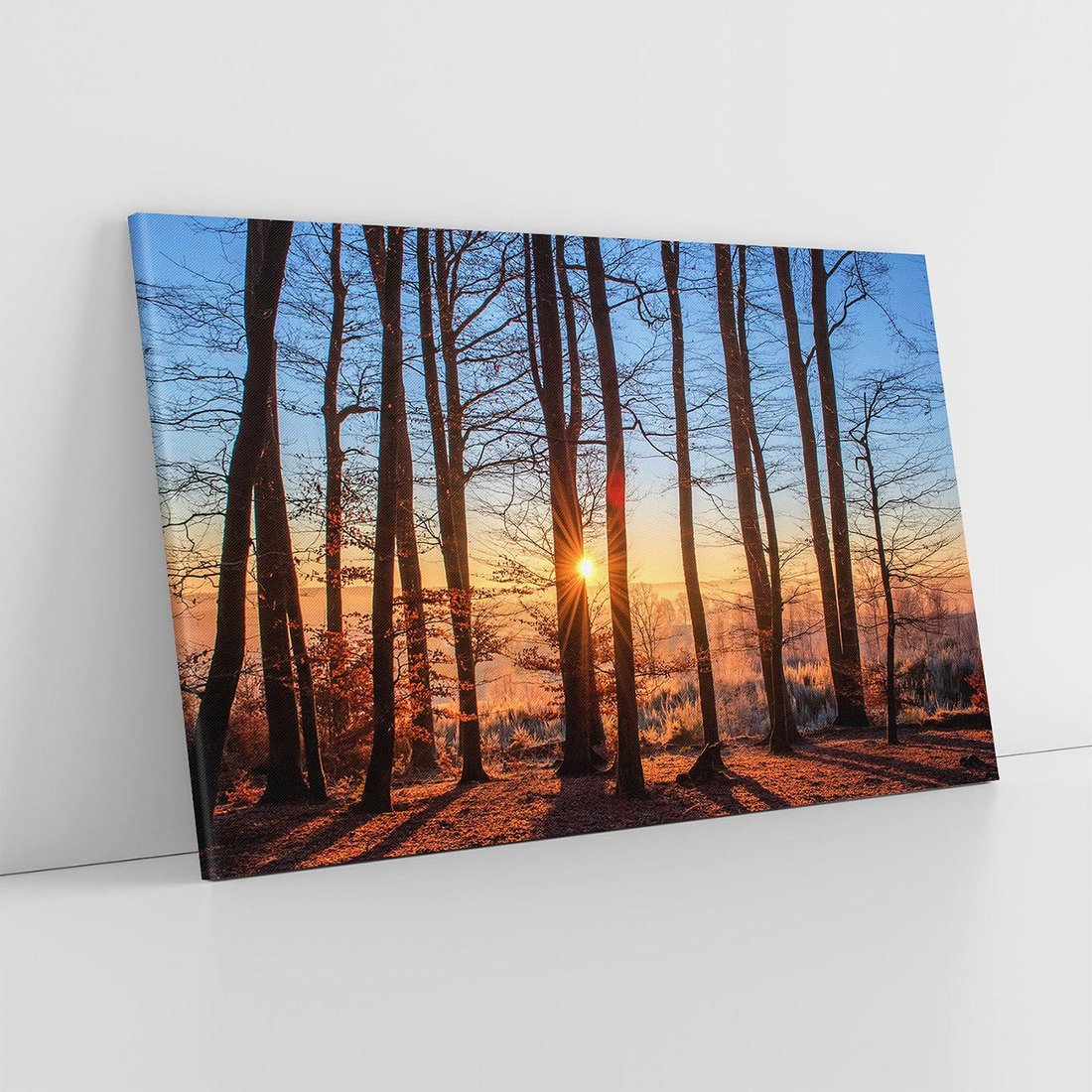 Obraz na płótnie 100x70 - Zachód słońca w jesiennym lesie - zachód słońca,
