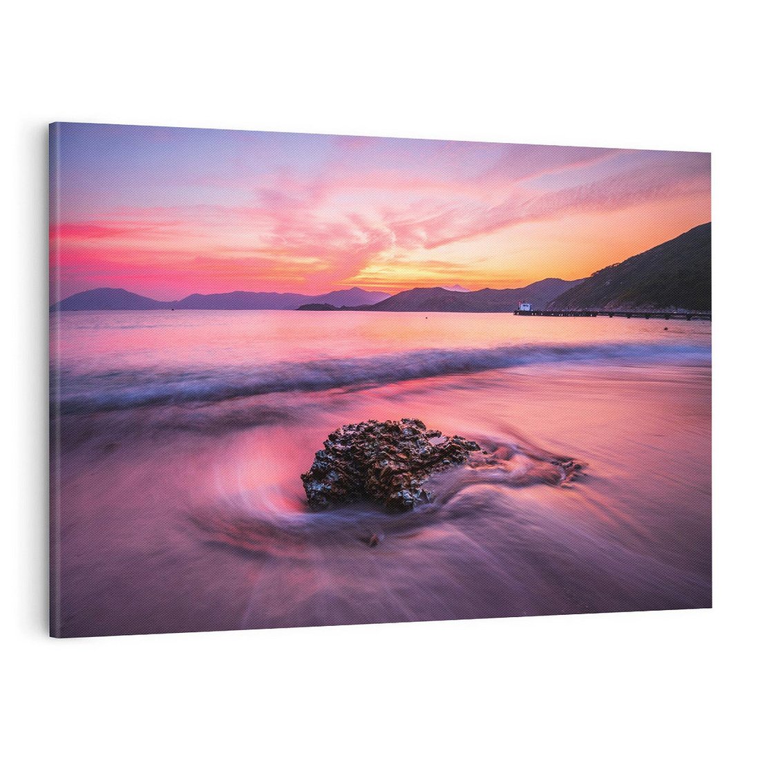 "Zaklęty Zachód" to magiczna fotografia, która ukazuje niezwykły widok zachodu słońca. Fioletowe i różowe niebo rozświetla horyzont, a morze łagodnie omywa złocisty piasek. Ta mistyczna sceneria zachwyci każdego miłośnika natury i podróży. To obraz, który przenosi nas w miejsce pełne spokoju i uroku natury.