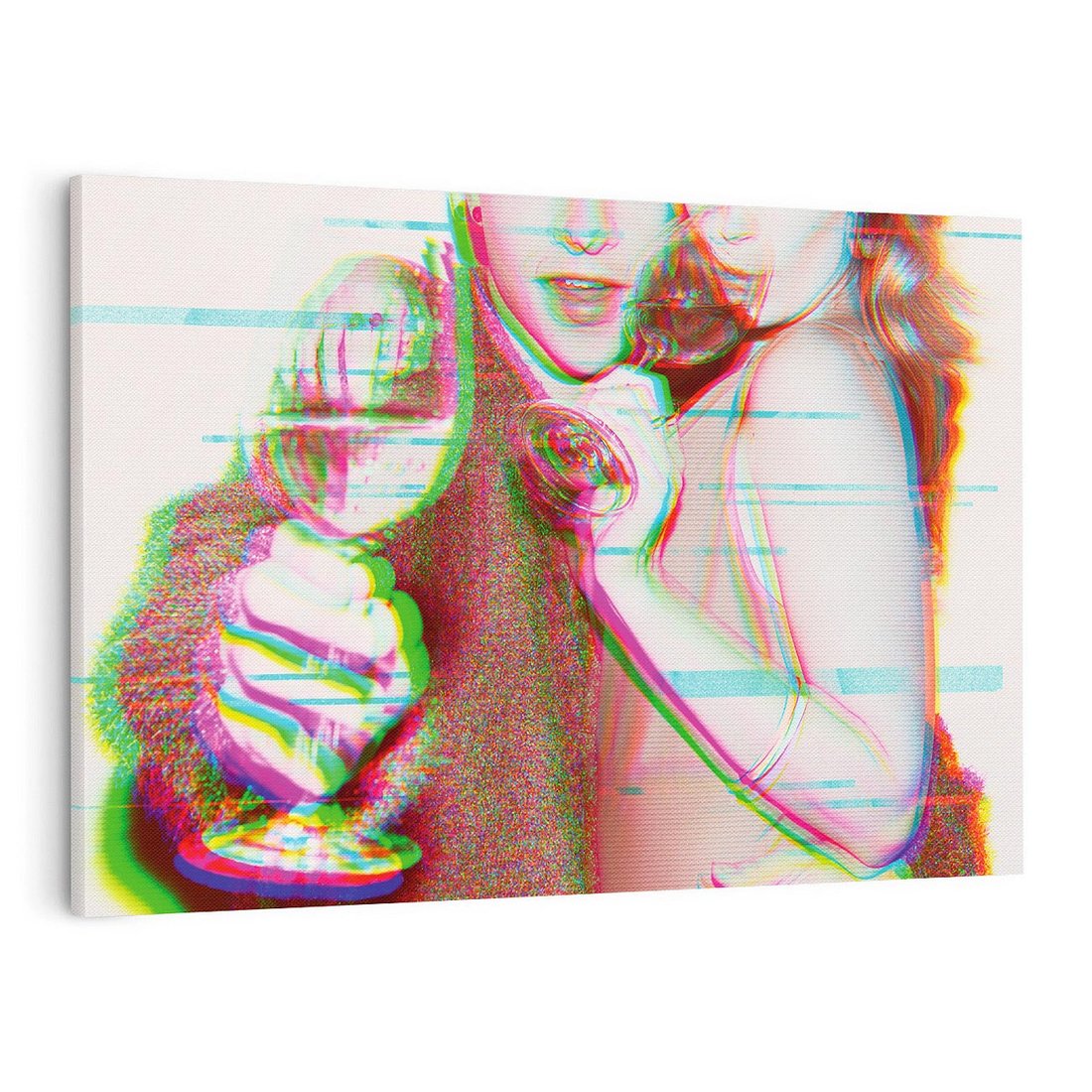 To unikalne zdjęcie przedstawia zakochaną parę na starej prześwietlonej kliszy, emanującą retro aurą. Klimatyczny obraz oddaje nostalgiczny nastrój i romantyczną chwilę. Motyw wina dodaje uroku i uczucia do kompozycji. To artystyczne dzieło doskonale pasuje do wnętrz, które pragną zachować ducha przeszłości i miłosny urok.