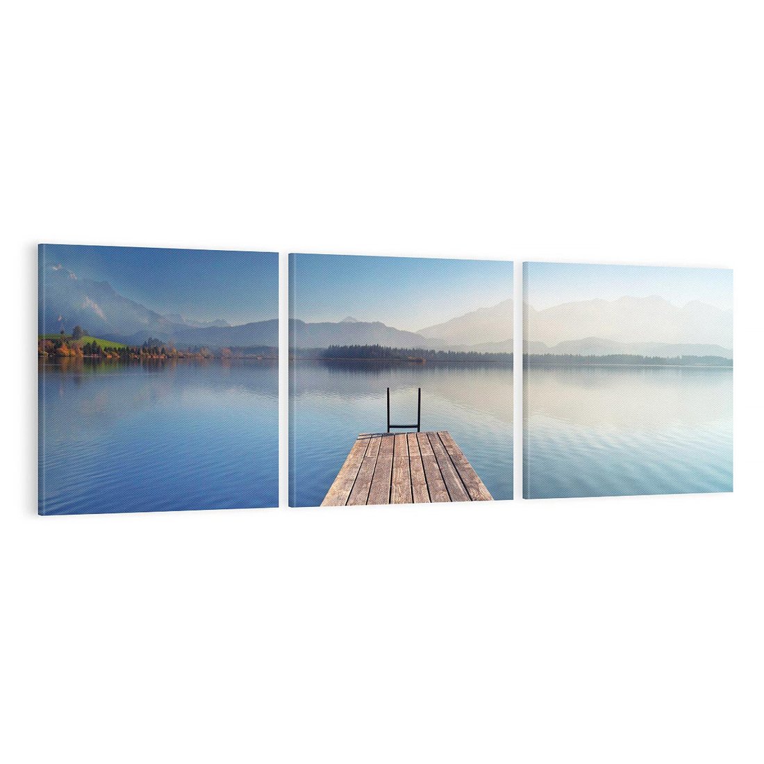 - Obraz na płótnie 120x40 - Alpy: jezioro i malownicze molo