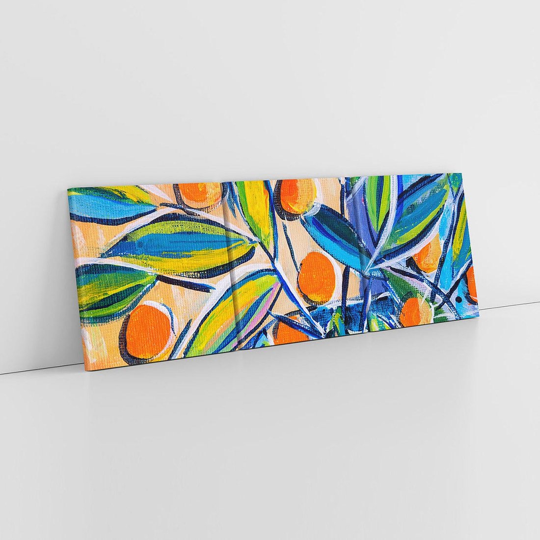 Energiczne mandarynki i pomarańcze za sprawą artystycznego pędzla łączą się na płótnie, dodając Twojej kuchni nowoczesnego i energetycznego akcentu. Sztuka gotowa, by zainspirować Twój dom.