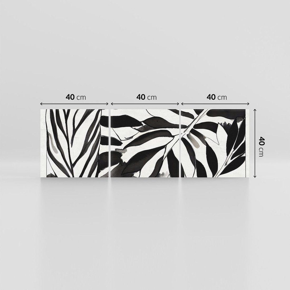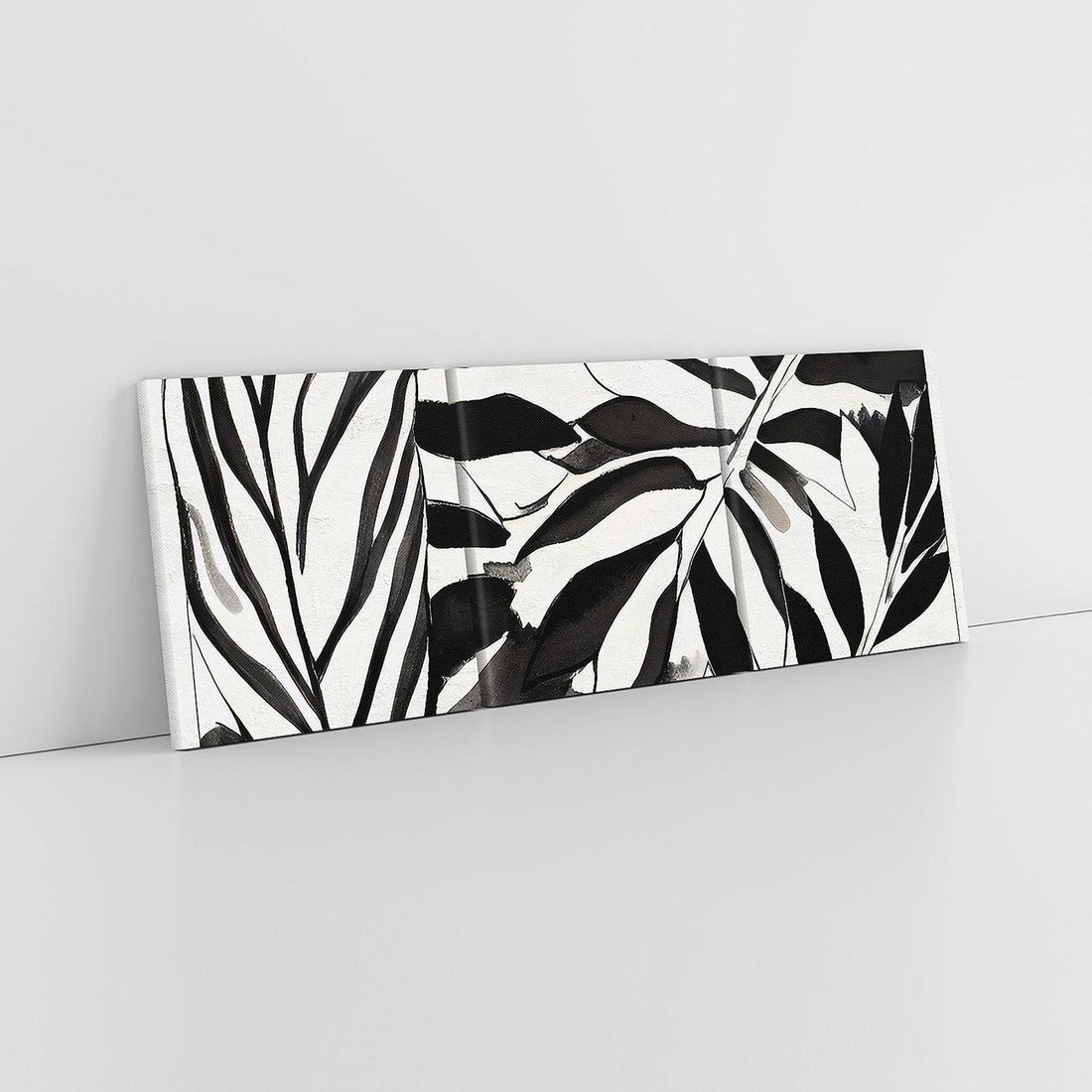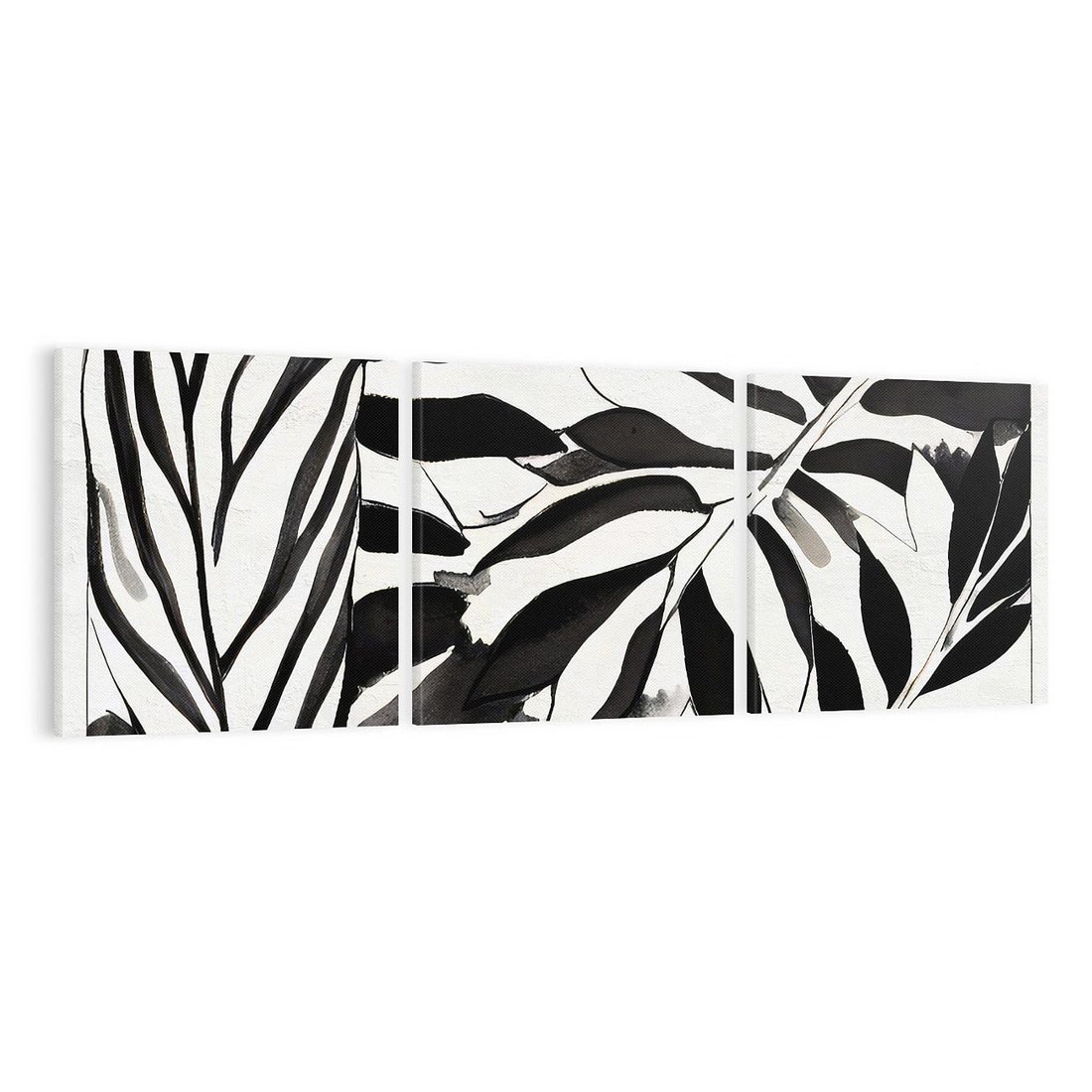 Obraz na płótnie 120x40 - Czarne Liście - akwarelowy obraz, czarno biały