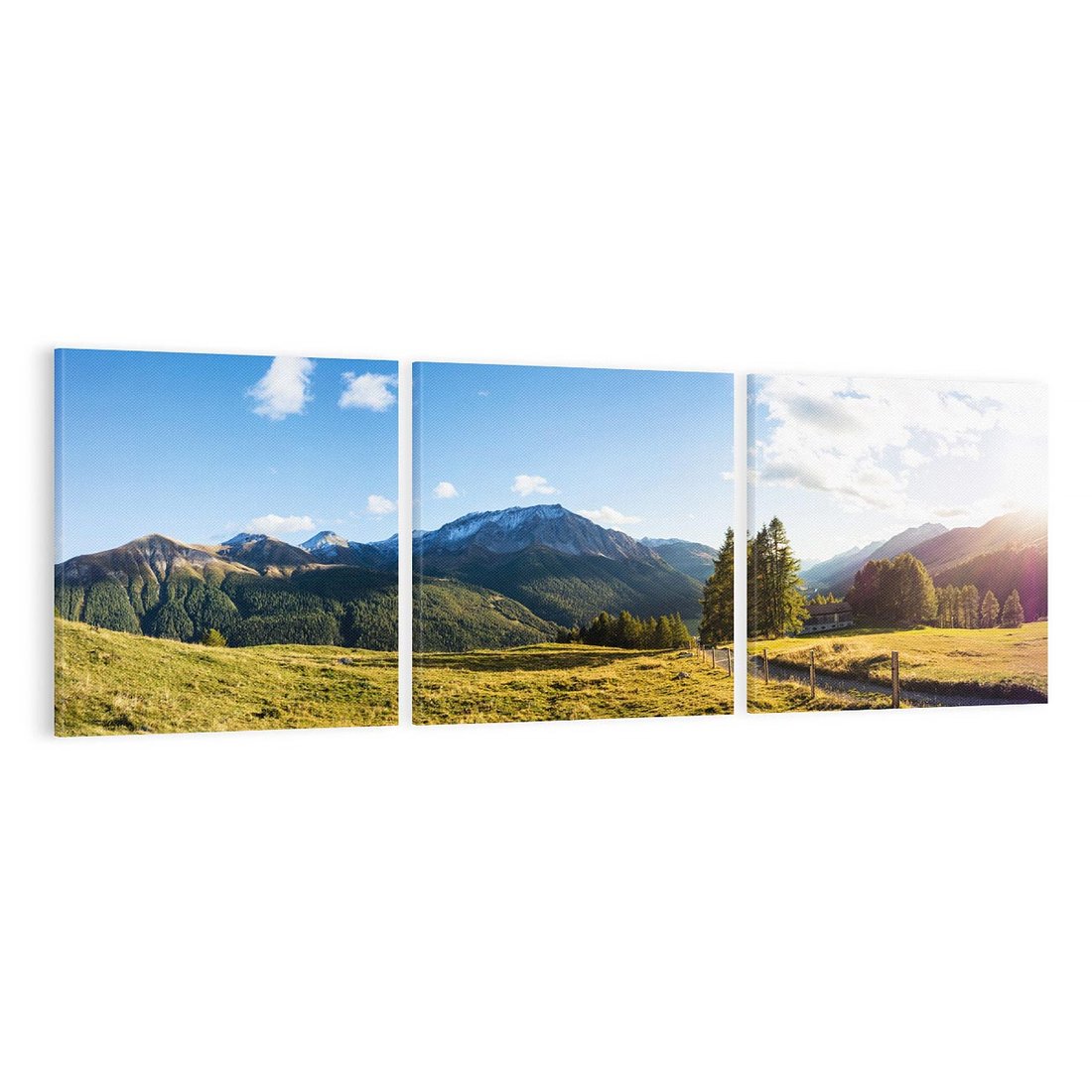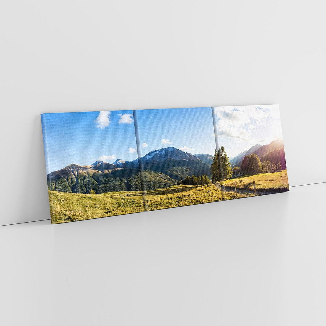 - Obraz na płótnie 120x40 - Górski pejzaż: łąka i szczyty