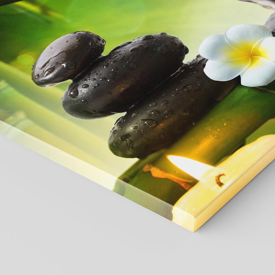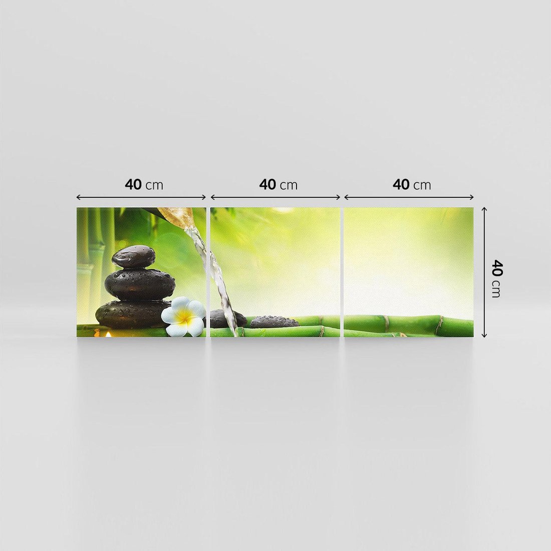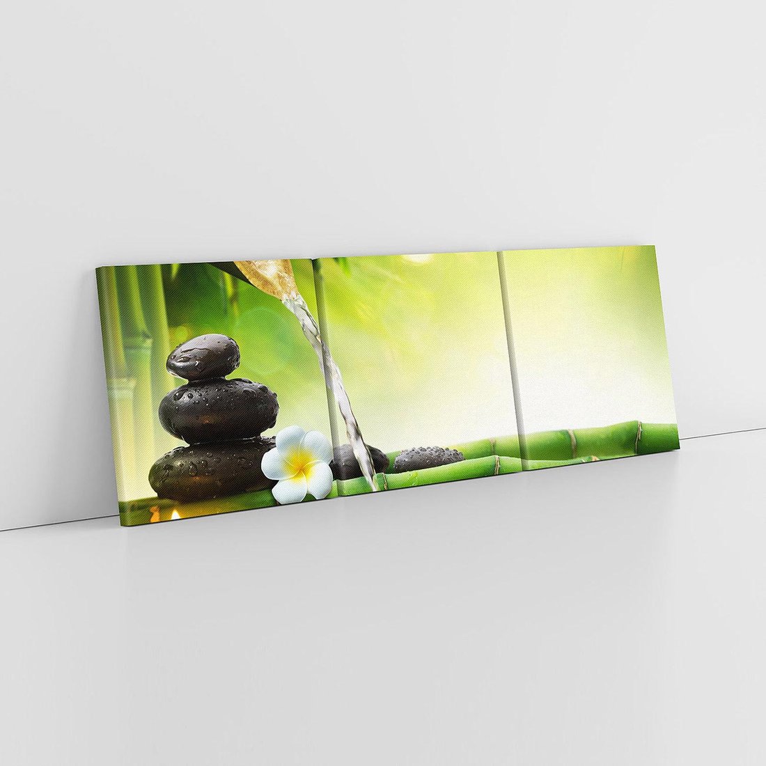 Ożyw swoje wnętrze tym uroczym obrazem przedstawiającym harmonię natury. Delikatne liście bambusa, spokojnie spływająca woda i ułożone kamienie tworzą relaksacyjną atmosferę. Ta kompozycja dodaje równowagi i spokoju, idealna dla osób pragnących stworzyć w domu oazę harmonii i zen.