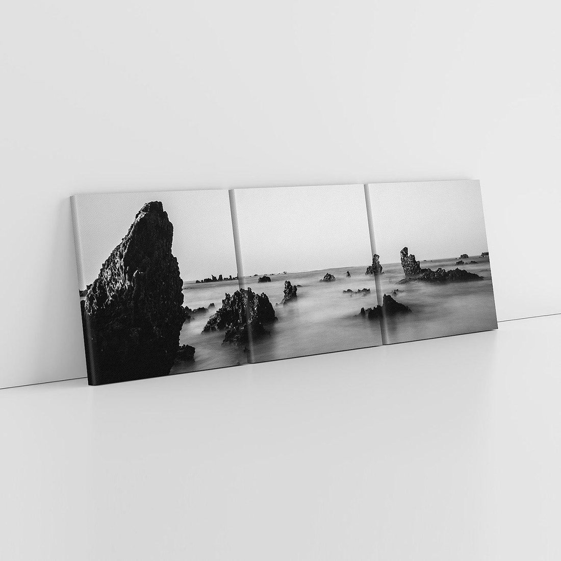 Obraz na płótnie 120x40 - Harmonia świateł i cieni - zamglona dzika plaża, skały na plaży
