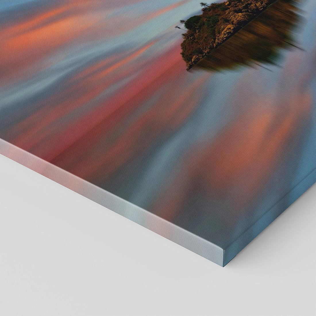 Ożyw swoje wnętrze tym malowniczym obrazem przedstawiającym morze i wyspę. Błękitna woda, odległe horyzonty i sielska atmosfera tworzą spokojną aurę. Ten obraz dodaje uczucia wakacyjnego relaksu i harmonii natury, idealny dla miłośników morskich krajobrazów i atmosfery wypoczynku w aranżacji wnętrza.