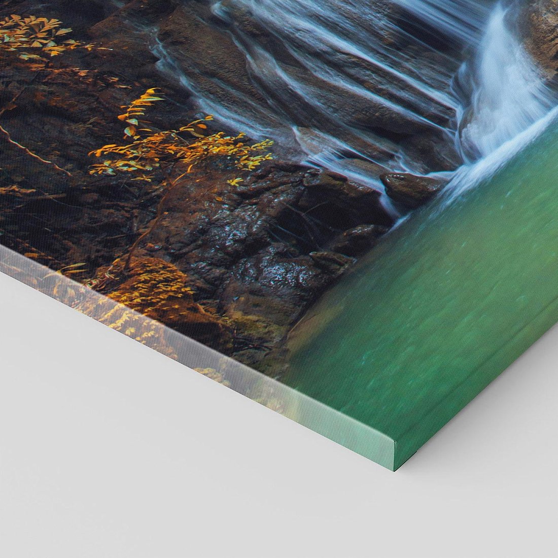 Odkryj magię kolorów jesieni dzięki temu malowniczemu obrazowi przedstawiającemu las i wodospad. Złote liście, spokojna woda i malownicze drzewa tworzą magiczną atmosferę. Ta kompozycja dodaje ciepła i nostalgii, idealna dla miłośników jesiennych krajobrazów i pejzażu natury.