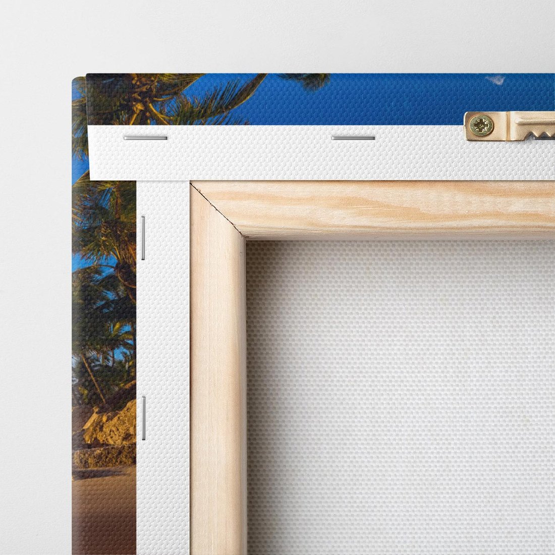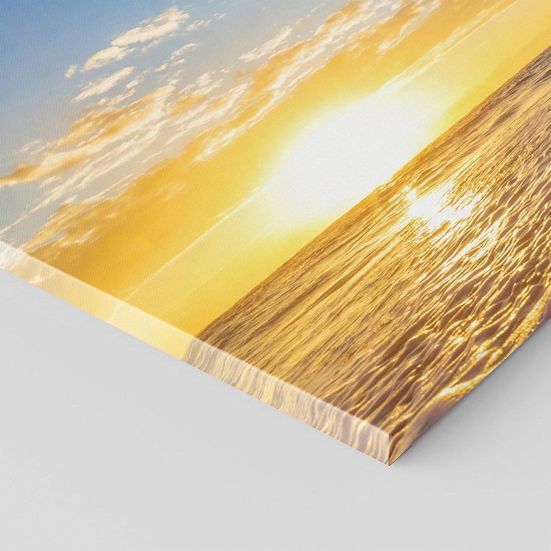 Odkryj magię zachodu słońca na rajskiej plaży dzięki temu malowniczemu obrazowi. Ciepłe kolory, palmowe drzewa i migotliwe fale tworzą romantyczną atmosferę. Ta kompozycja dodaje wakacyjnego klimatu i nostalgii, idealna dla osób pragnących poczuć atmosferę tropików i błogiego wypoczynku na plaży.