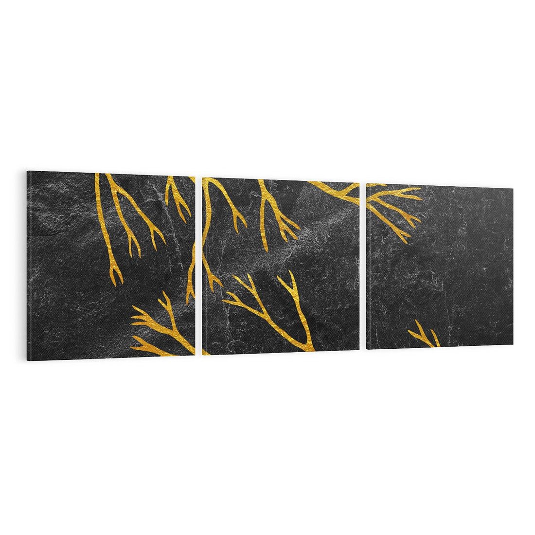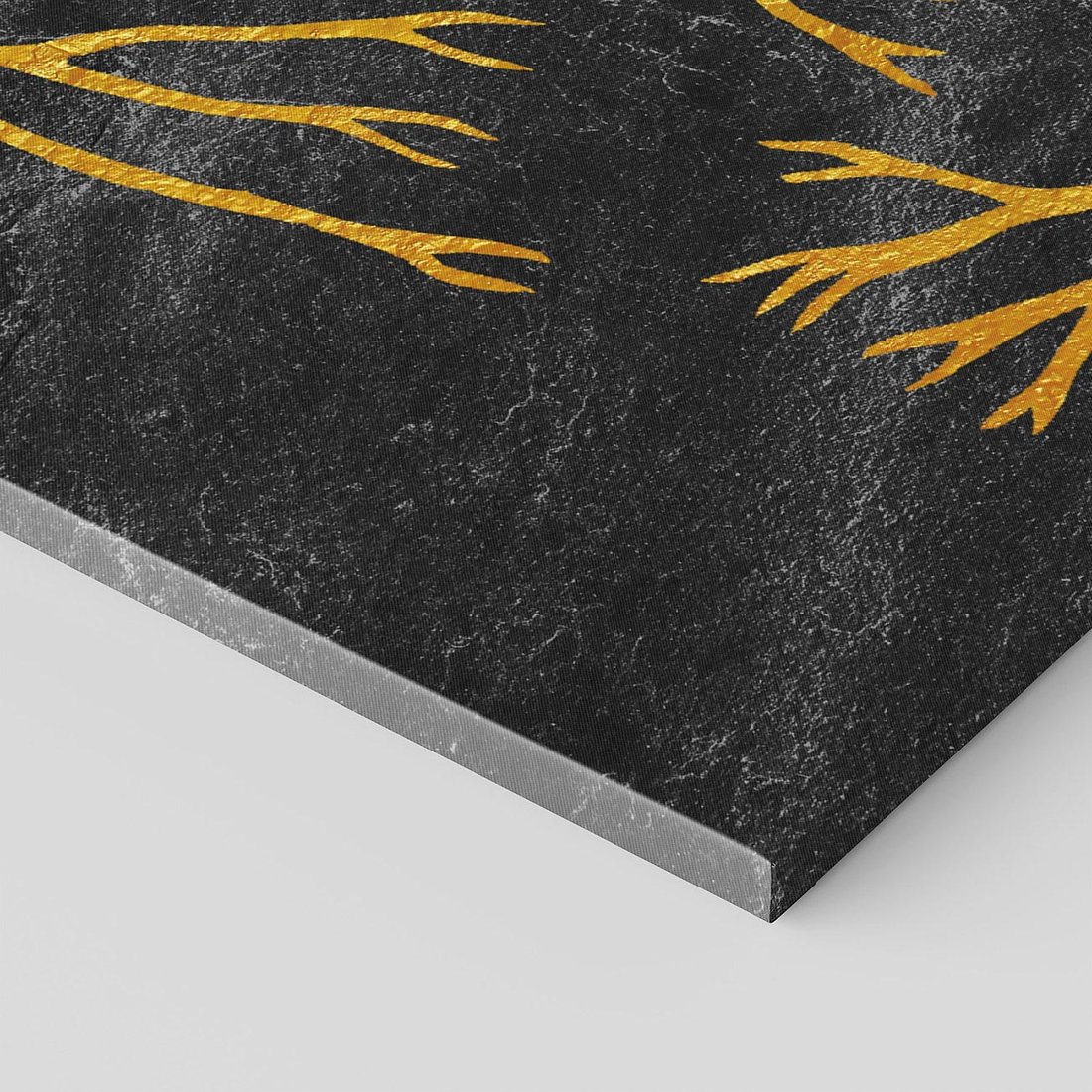 Ten metaforyczny obraz przedstawia złote gałęzie drzew na czarnym marmurowym tle, emanujący elegancją i tajemniczym urokiem. Minimalistyczny design podkreśla wyrafinowany charakter kompozycji. To dzieło sztuki przenosi widza w niezwykłą przestrzeń, gdzie złoto symbolizuje światło i nadzieję w ciemnościach. Idealny dodatek do wnętrz, które pragną zachować wyjątkowy i niezwykły wystrój.
