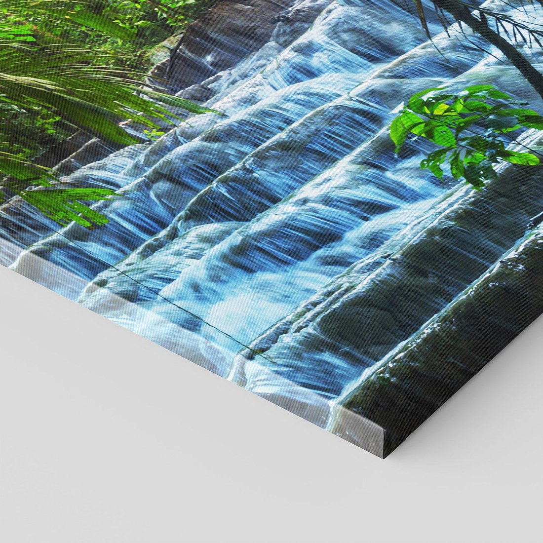 Ten malowniczy obraz na płótnie przeniesie Cię do meksykańskiego lasu, gdzie wśród zieleni znajduje się imponujący wodospad. Jego spadające wody, gęste drzewa i egzotyczne rośliny tworzą harmonijny krajobraz. Dodaj nutę egzotyki i naturalnego piękna do swojego wnętrza.