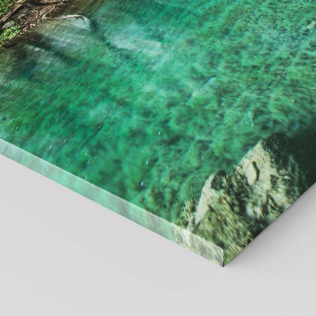 Przenieś się do magicznego krajobrazu z tym obrazem przedstawiającym most unoszący się nad skalistymi wodami. Kontrast między twardością skał a płynnością wody tworzy niesamowitą atmosferę. Ten obraz dodaje wrażeń i przywołuje siłę natury, idealny dla miłośników pejzaży i architektury.