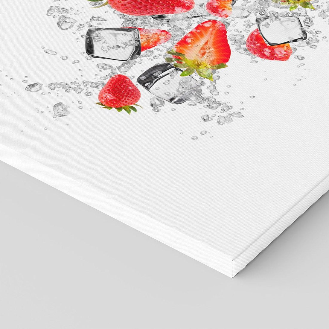 Przywołaj oazę świeżości dzięki temu uroczemu obrazowi przedstawiającemu truskawki w wodzie. Czerwone owoce, pływające płatki i odświeżająca atmosfera tworzą relaksacyjną aurę. Ta kompozycja dodaje koloru i witalności, idealna dla miłośników przyjemności zmysłowych i pragnących wprowadzić owocowe błogostany do swojego wnętrza.