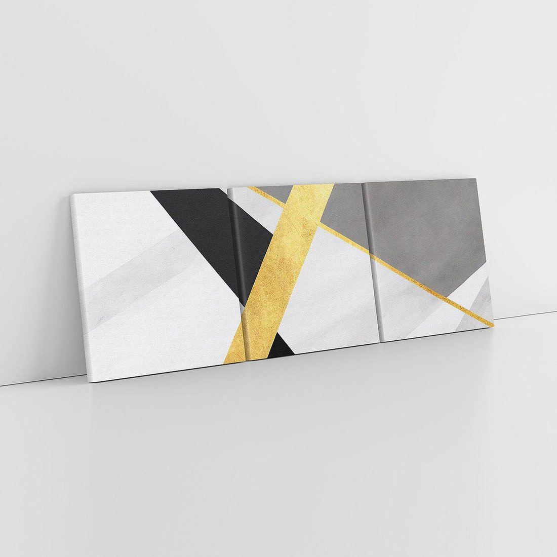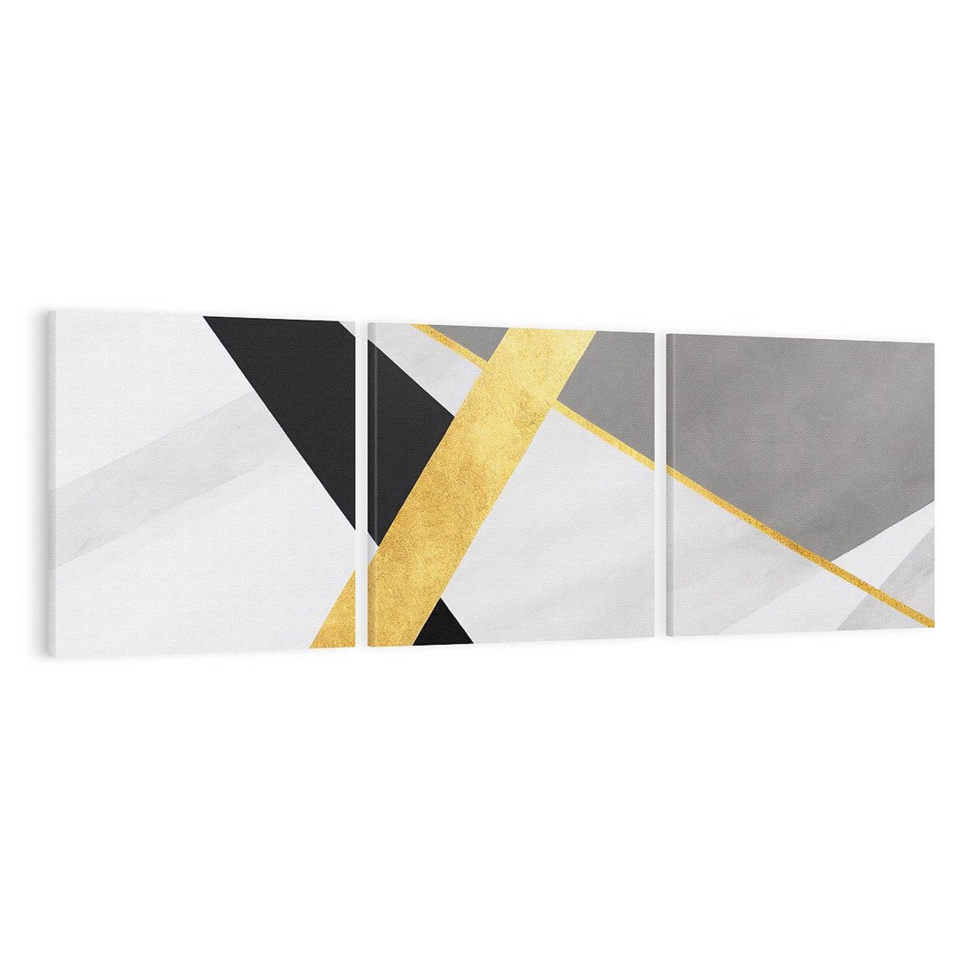 Obraz na płótnie 120x40 - Pudrowe Abstrakcyjne Lustra - złote abstrakcyjne linie, szarość