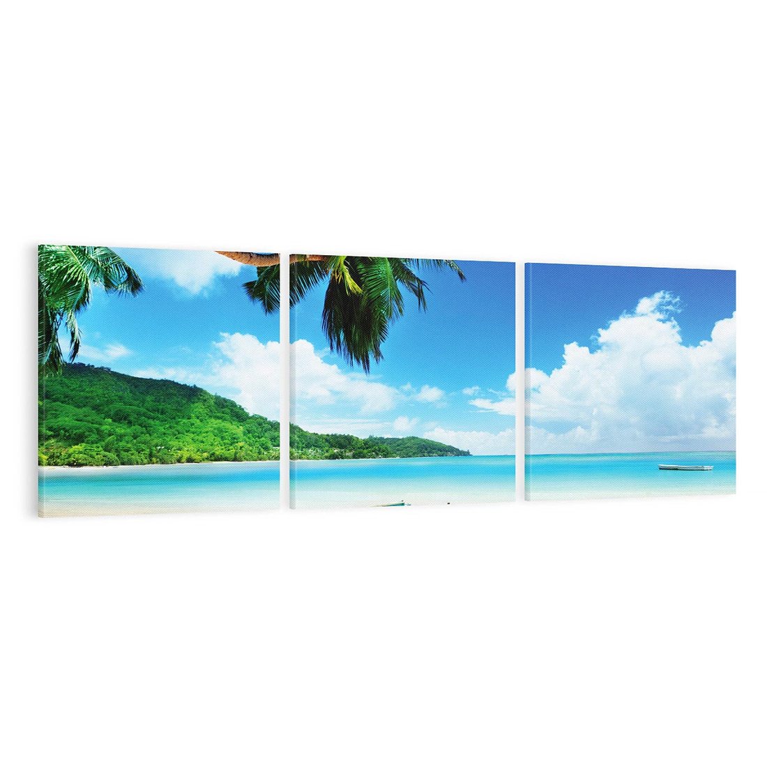 Przenieś się do rajskiej plaży dzięki temu zachwycającemu obrazowi na płótnie. Palmy, błękitny ocean i łódź tworzą idylliczną scenerię. Jego egzotyczne kolory i atmosfera letniego wypoczynku dodają relaksu i sielankowego nastroju do Twojego wnętrza.