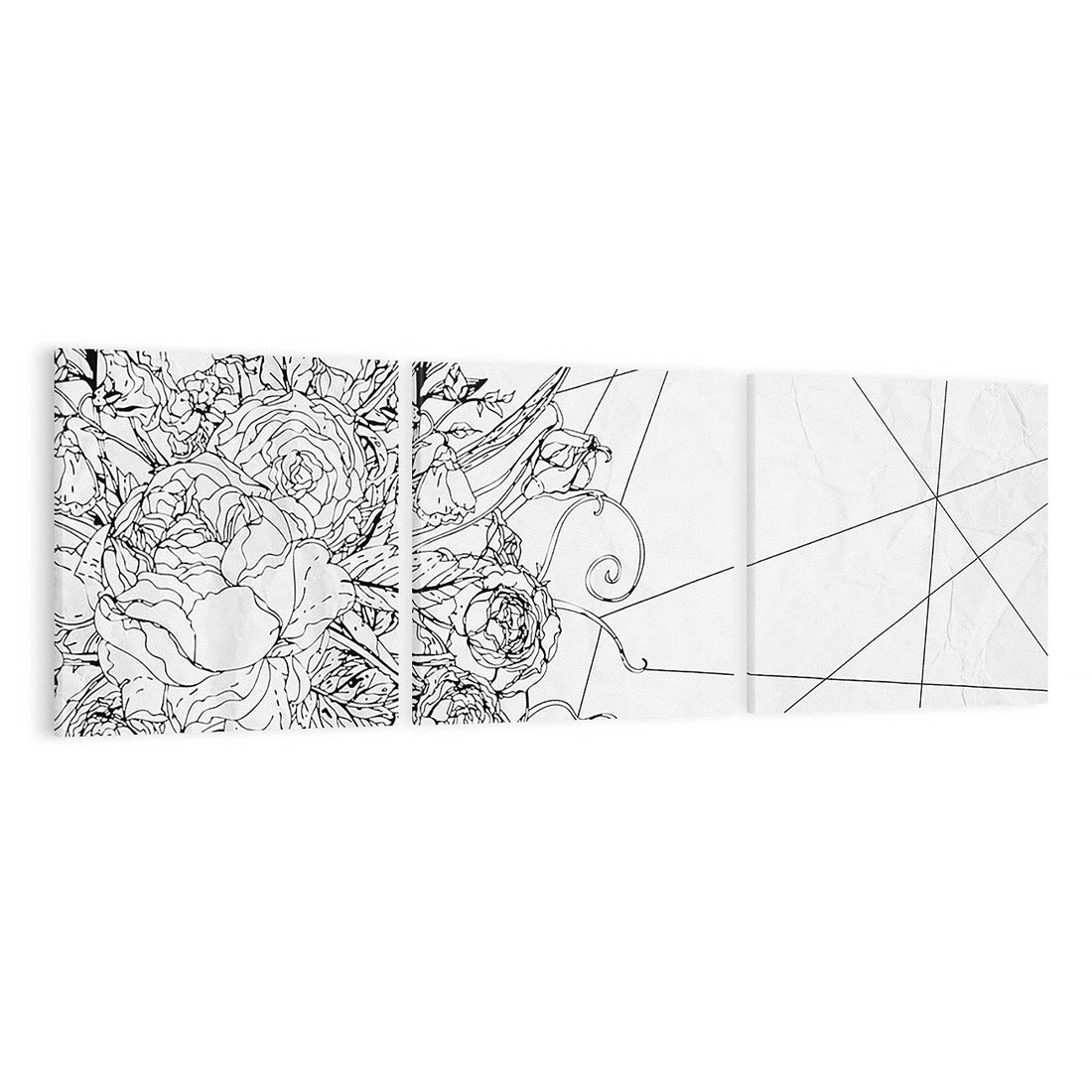 Obraz na płótnie 120x40 - Refleksje w martwym punkcie - graficzny szkic, kompozycja kwiatów