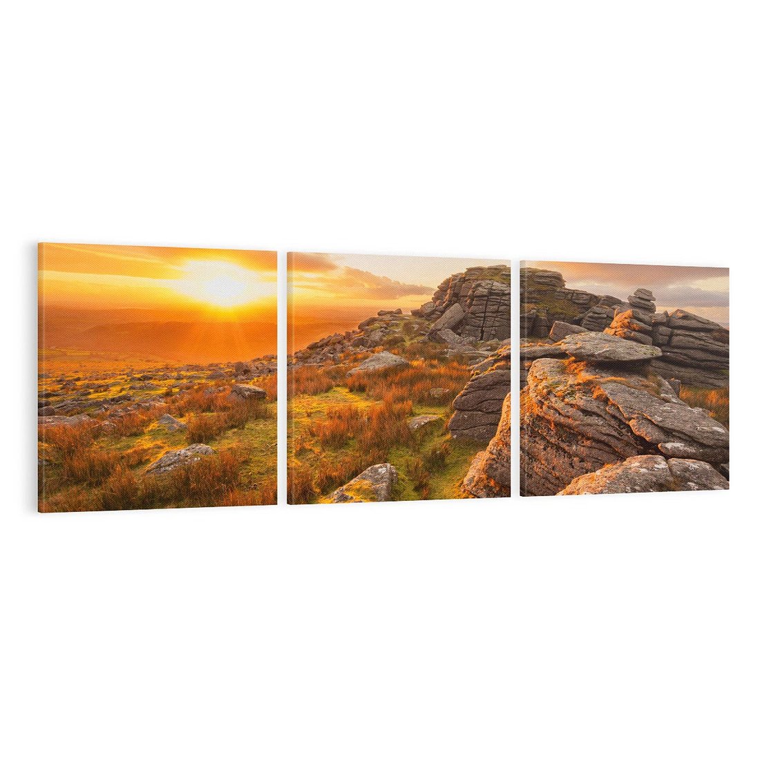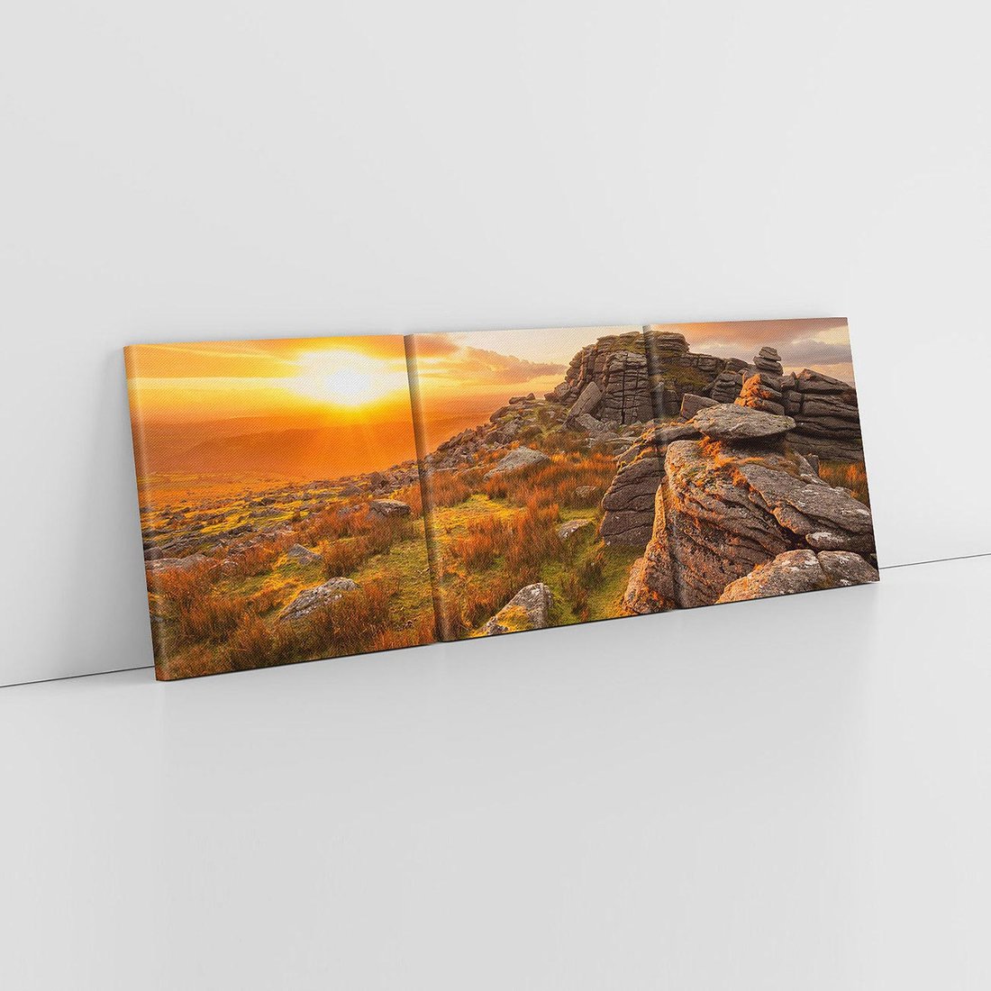 Ten impresjonistyczny obraz na płótnie ukazuje skały oplątane promieniami słońca. Jego ciepłe kolory, kontrast światła i cienia oraz naturalne formacje skalne dodają siły i piękna do Twojego wnętrza. Odczuj moc natury i harmonię krajobrazu w swoim domu.