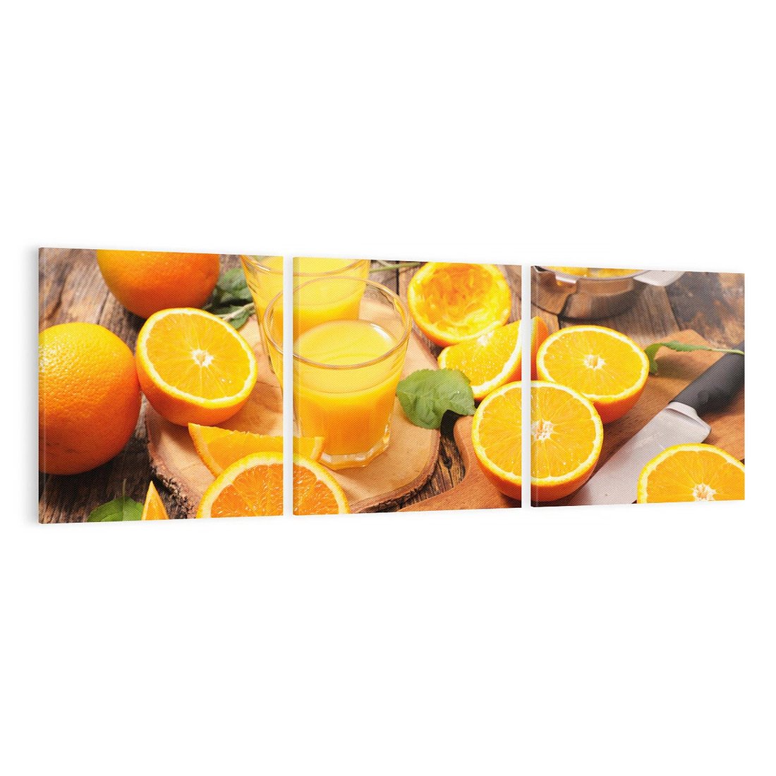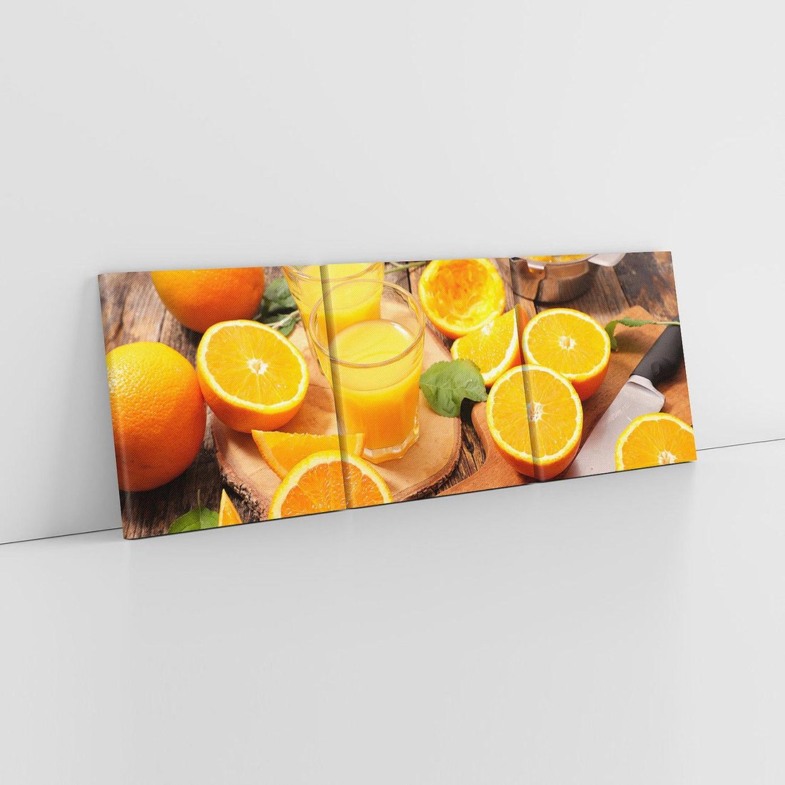Obraz na płótnie 120x40 - Soczyste pomarańcze i soki - pomarańcze, soki