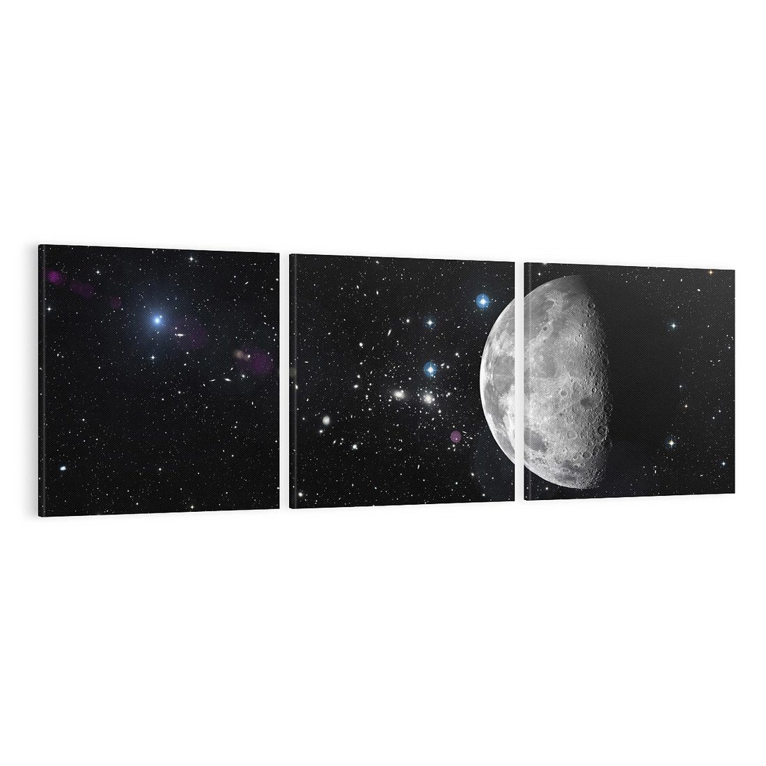 Odkryj magię nocnego nieba dzięki temu malowniczemu obrazowi przedstawiającemu księżyc i gwiazdy. Błękitne tło, migoczące światła i tajemnicza atmosfera tworzą niezapomniany obraz. Ta kompozycja dodaje mistycyzmu i marzeń, idealna dla miłośników kosmosu i romantycznych podróży.