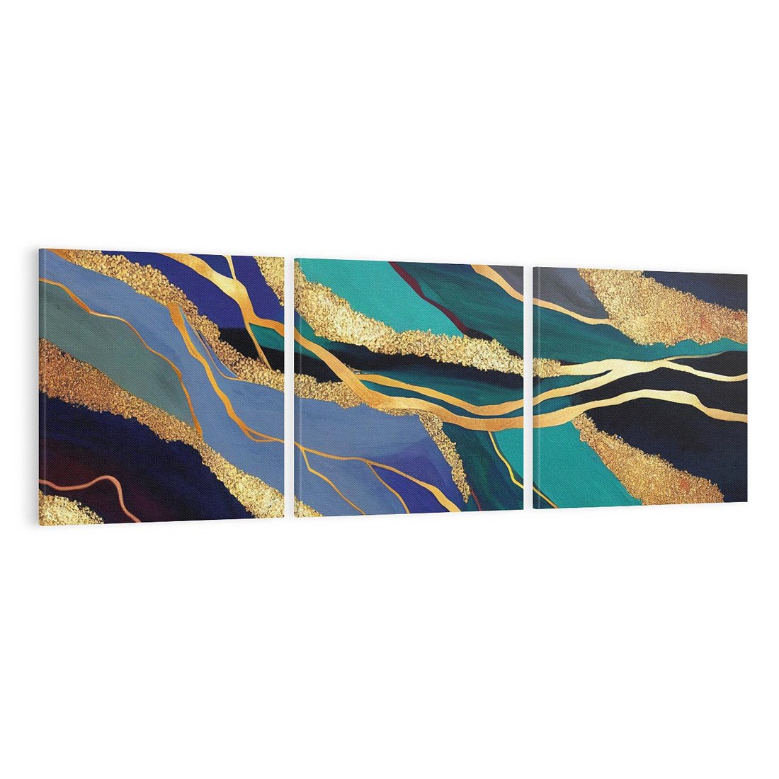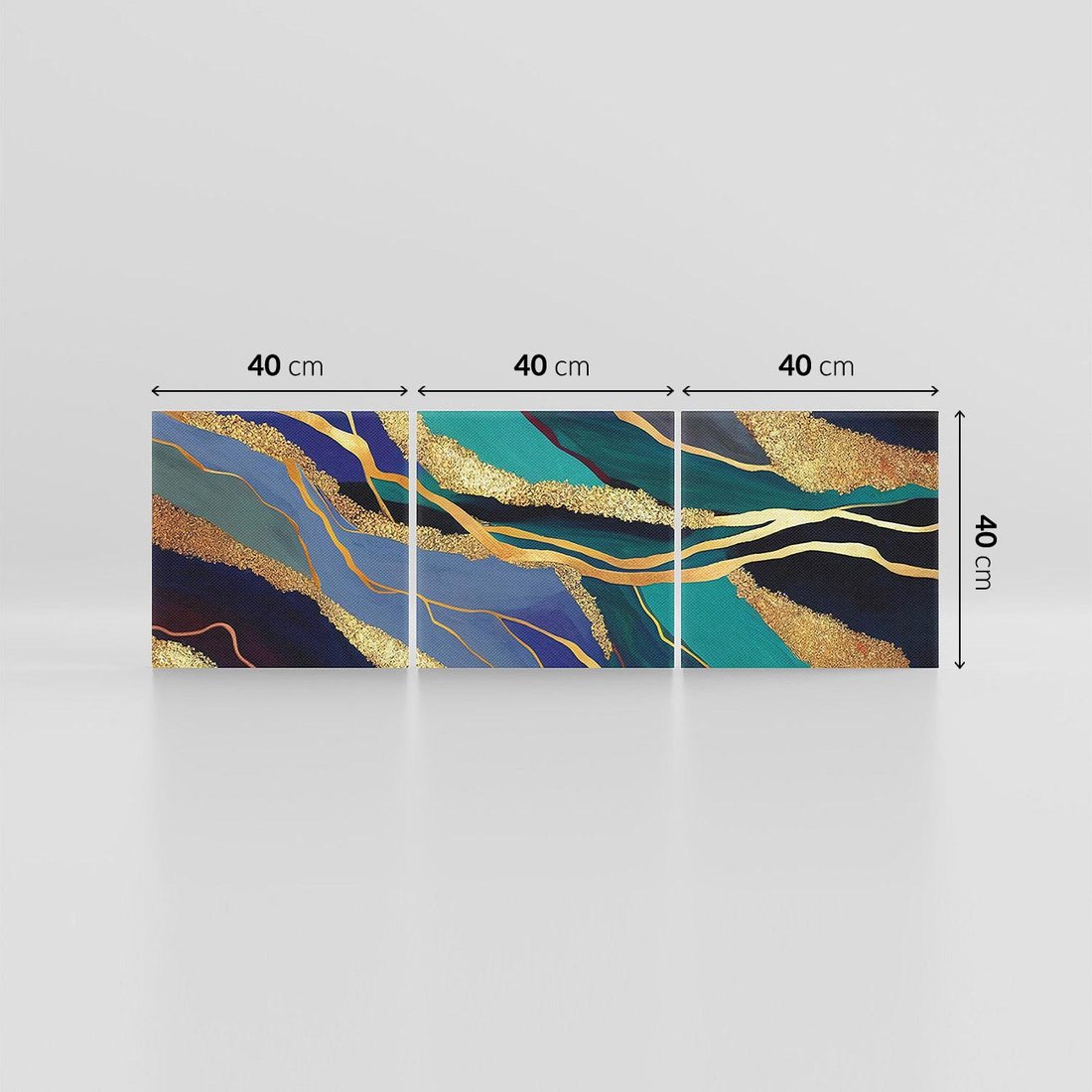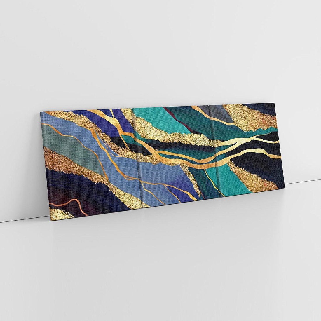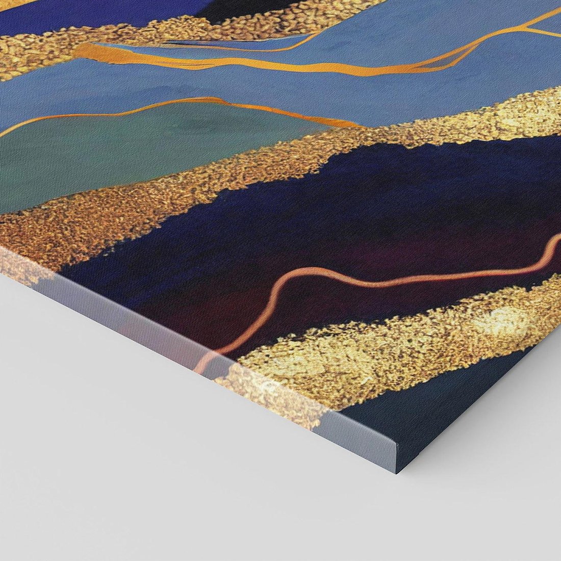 Zachwycaj się abstrakcyjną grafiką inspirowaną marmurem, wzbogaconą o intensywne kolory złota, zieleni i granatu. To wyjątkowe dzieło sztuki, stworzone dla osób ceniących elegancję i nowoczesność. Obraz emanuje luksusowym wdziękiem i będzie doskonałą dekoracją dla miłośników sztuki, pragnących unikalnego akcentu w swoich wnętrzach.