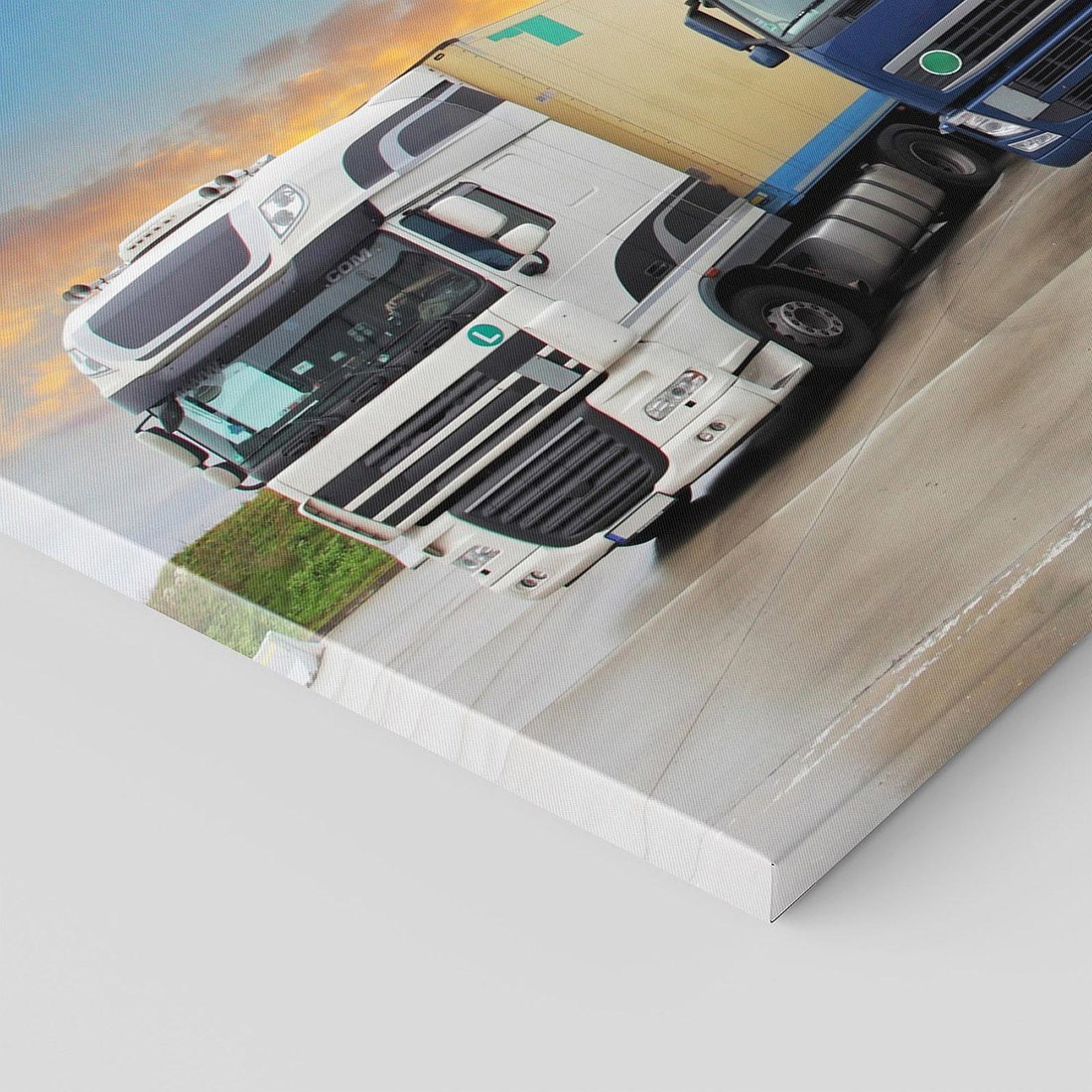 Przenieś się w świat dynamicznego ruchu dzięki temu malowniczemu obrazowi przedstawiającemu ciężarówki, tiry i samochody. Wielobarwne pojazdy, prędkość i energia tworzą nastrojową atmosferę. Ten obraz dodaje dynamizmu i pasji do wnętrza, idealny dla miłośników motoryzacji i fascynującego świata samochodów.